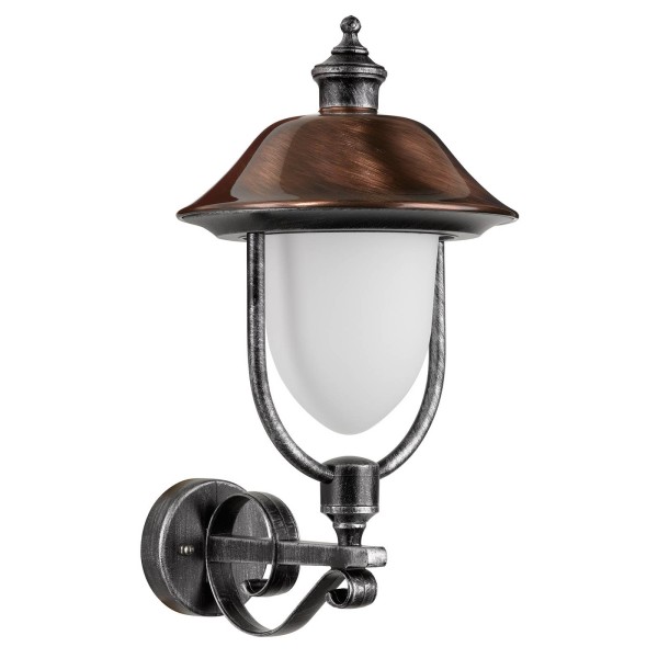 Staande LED-buitenwandarmatuur 1153LED in gegoten aluminium met koperen dak Deze staande LED-buitenwandlamp overtuigt met zijn klassieke design in lantaarn-look en wordt een mooie blikvanger in elke buitenruimte. De armatuur is gemaakt van robuust spuitgietaluminium en een koperen dak, waardoor ze bij uitstek geschikt is voor gebruik buitenshuis. Het warmwitte licht wordt door de diffuser van opaalglas in alle richtingen niet-verblindend naar de omgeving uitgestraald. De wandarmatuur kan bijvoorbeeld worden gebruikt bij de ingang op het balkon of terras.