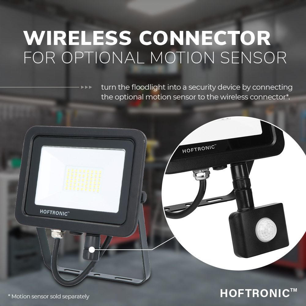Een unieke nieuwe feature van deze LED breedstraler is de draadloze connector waarmee de breedstraler aangenaam kan worden ingezet als bescherming, waarbij de lamp moet aanspringen bij detectie van beweging. Met de aanvullend bewegingssensor is dit binnen enkele seconden gerealiseerd door het er op schroeven van de plug & play draadloze bewegingssensor. Ben je opzoek naar een LED breedstraler met schemerschakelaar waarmee de schijnwerper moet aanspringen bij schemering dan hebben wij een bewegingssensor met ingebouwde schemerschakelaar en timer ter beschikking welke men geheel naar wens kan instellen via de meegeleverde afstandsbediening.
