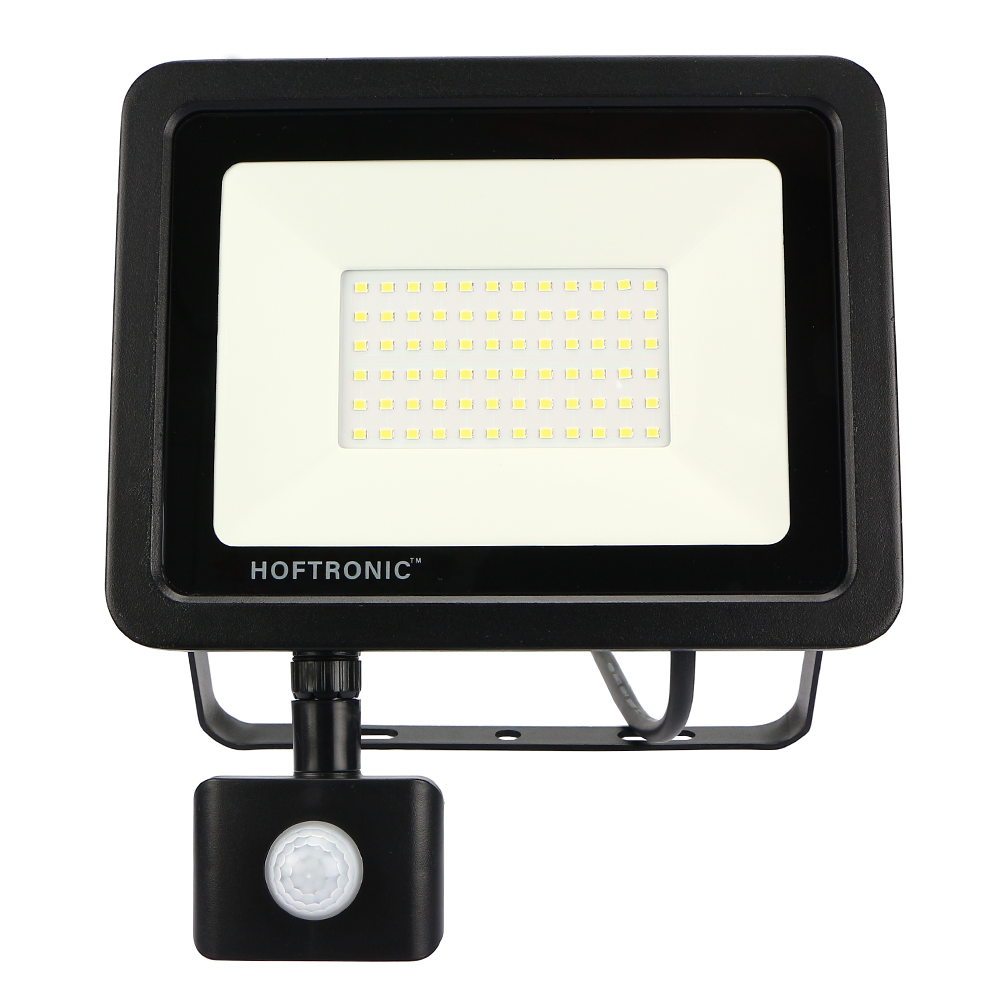 Begin regelrecht met het besparen van vitaliteit en vervang jouw huidige 450 Watt breedstraler door onze energiezuinige 50 Watt LED breedstraler met bewegingssensor van hoge kaliber. HOFTRONIC™ LED Breedstralers zijn uitgerust met de nieuwste Osram LED’s waarmee de klasse van de breedstralers gewaarborgd wordt met een levensduur van 50.000 branduren. De aluminium behuizing waakt voor een IP65-waarde waarmee de schijnwerper bekwaam is voor toepassingen in een binnen- en buitenomgeving. Ideaal voor het van licht voorzien van etalages, showrooms, gebouwen, terreinen maar ook voor algemene buitenlamp. Door het neutraal witte licht van 4000K worden deze toepassingen ideaal verlicht.