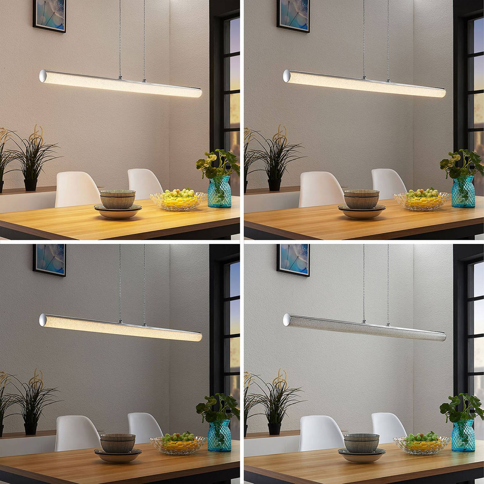 Met de staafvorm is de LED hanglamp uitstekend bekwaam om een tafel in de eethoek te verlichten en visueel zeer de moeite waard om te benadrukken is de kristallijne vorm binnenin de langwerpige, cilindrische kap van acryl, want dit is niet alleen de moeite waard om te zien wanneer de lamp uit is, maar overtuigt mede met een luxe schittering wanneer de LED’s ingeschakeld zijn, wat zeer glamoureus overkomt.