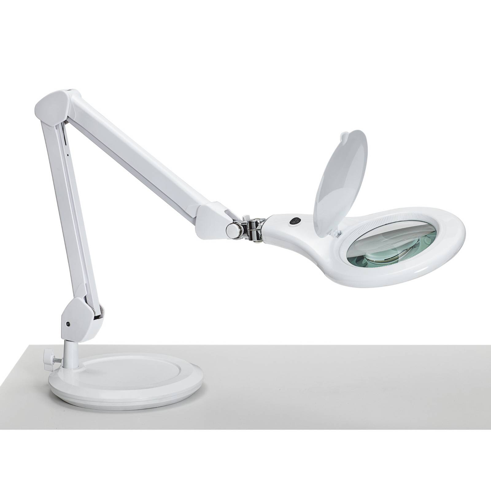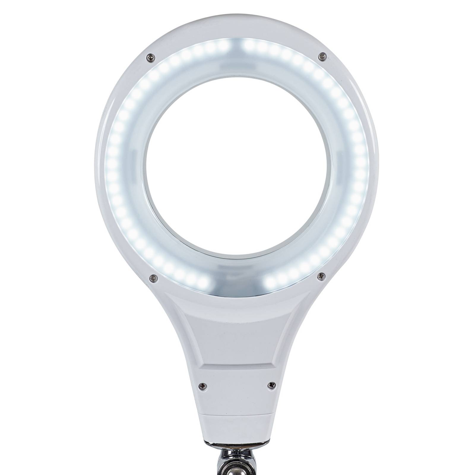 Flexibele LED loeplamp MAULmakro met 1,75x vergrotingMAULmakro is een variabel instelbare LED loeplamp uitgerust met een stevige parallellogramvormige metalen arm en een stabiele voet met draaischarnier. Hij is ideaal voor nauwkeurig werk in laboratoria en werkplaatsen of voor het fijne werk in huis. De geïntegreerde 3-diopter lens vergroot 1,75 keer. – 2.220 lux verlichtingssterkte op 35 cm afstand