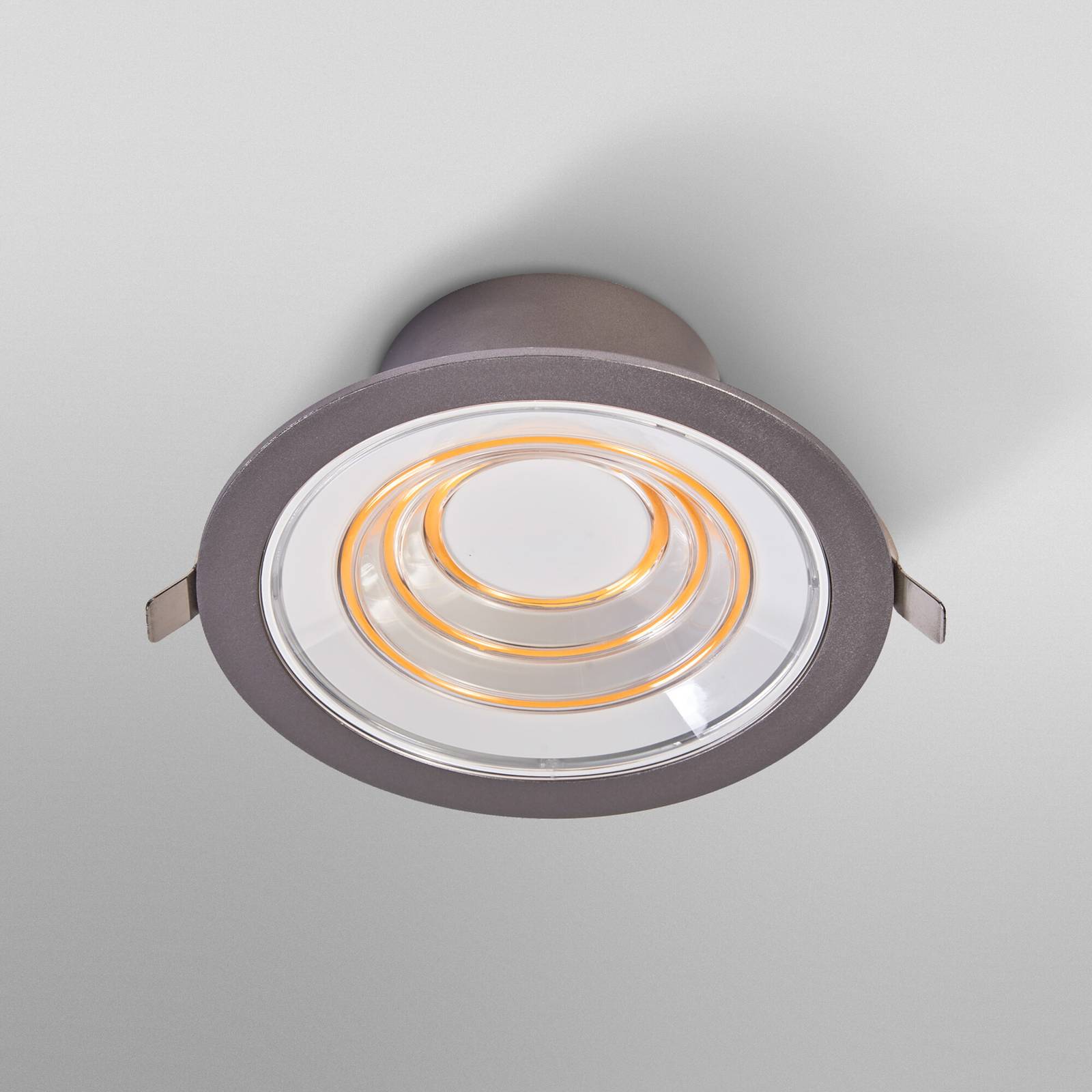 LED downlight Decor Filament Ripple De ronde LED downlight Decor Filament Ripple is uitgerust met drie ringvormige LED filamenten en biedt verschillende lichtsferen, omdat de LED filamenten in verschillende combinaties kunnen worden geschakeld via een wandschakelaar. De downlight is gemaakt van zilverkleurig aluminium en is duurzaam, energiezuinig en snel en eenvoudig te installeren. Hij is uitgerust met een elektronische ballast en wordt geleverd inclusief compleet montagemateriaal