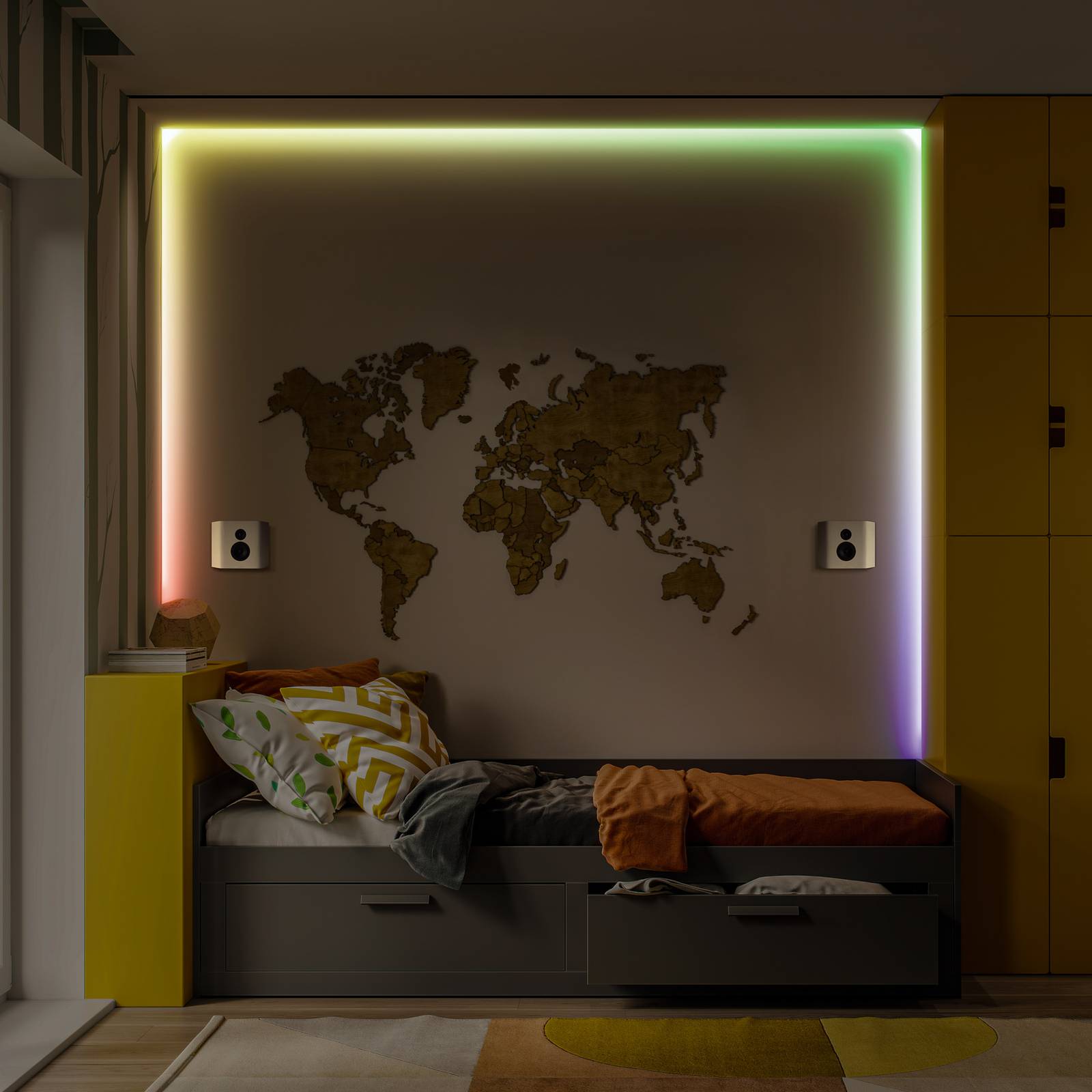 Decoratieve RGB LED-strip Flex Magic – regelbaar via controller of smartMet tot 16 miljoen kleuropties, die ook individueel regelbaar zijn per sectie, biedt de Flex Magic LED-strip individuele sfeerverlichting voor woonkamers en lounges. De flexibele en inkortbare strip kan perfect worden aangepast aan de betreffende omgeving. De stroom wordt geleverd via het stopcontact dankzij de meegeleverde kabel met plug-in voedingseenheid. Een afstandsbediening (incl. batterij) is inbegrepen voor de bediening (schakelen, dimmen, kleurselectie). Er wordt ook een verdeler met WiFi-ontvanger meegeleverd, waarmee de LED-strip via WLAN kan worden aangesloten. Hierna kan de volledige configuratie via app worden uitgevoerd en kan de besturing ook via spraakcommando worden uitgevoerd.Technische gegevens / compatibiliteit:- bestuurbaar via LEDVANCE SMART WiFi-app (gratis beschikbaar voor iOS en Android); maakt voorinstellingen en automatiseringen mogelijk- spraakbesturing via Google Assistant of Amazon Alexa mogelijk- RGB instelbaar segment- dimbaar- beschermingsklasse: IP44- netwerkprotocol: WiFi