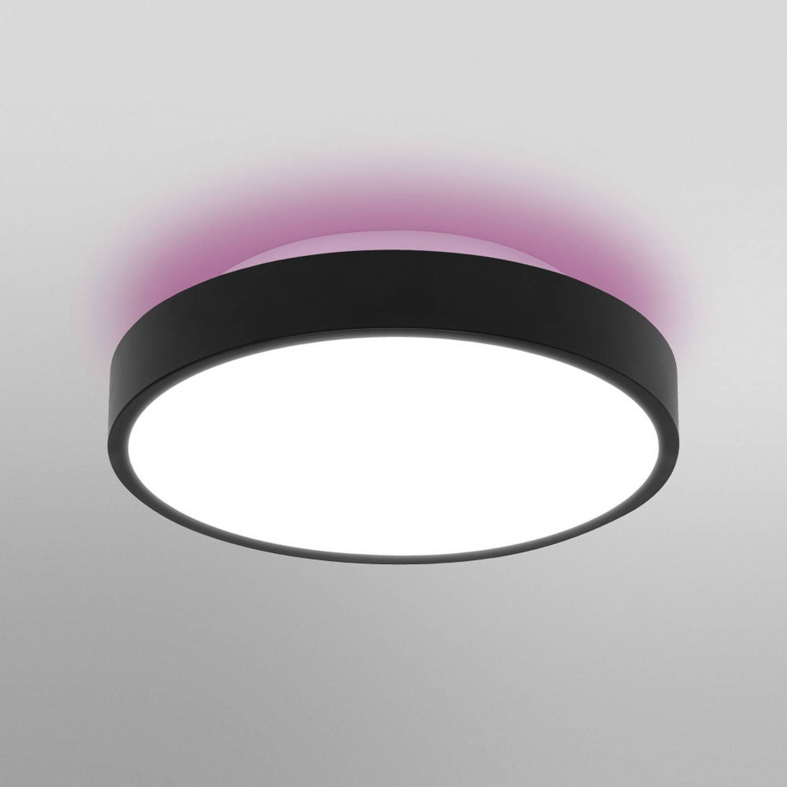 Zwarte LED-plafondlamp Orbis Backlight met LEDVANCE SMART+ WiFi-technologie De Orbis Backlight LED plafondlamp is gemaakt van metaal en polycarbonaat en heeft twee lichtbronnen die afzonderlijk kunnen worden bediend. Het licht wordt uitgestraald naar de vloer en het plafond, waardoor een prachtig lichteffect ontstaat. Dankzij het onopvallende design past de armatuur in verschillende woonomgevingen. De helderheid, lichtkleur en kleurtemperatuur kunnen worden aangepast via een app of stemcommando. De plafondlamp is geïntegreerd met de LEDVANCE SMART+ WiFi technologie via WLAN. Technische gegevens / compatibiliteit: – Bedienbaar via LEDVANCE SMART+ WiFi app (met minstens Android 4.4 of iOS 9.0) gratis; maakt voorinstellingen en automatiseringen mogelijk. – Spraakbesturing via Google Assistant of Amazon Alexa mogelijk – RGB en kleurtemperatuur instelbaar: 3.000 K – 6.500 K – dimbaar – Netwerk protocol: WiFi