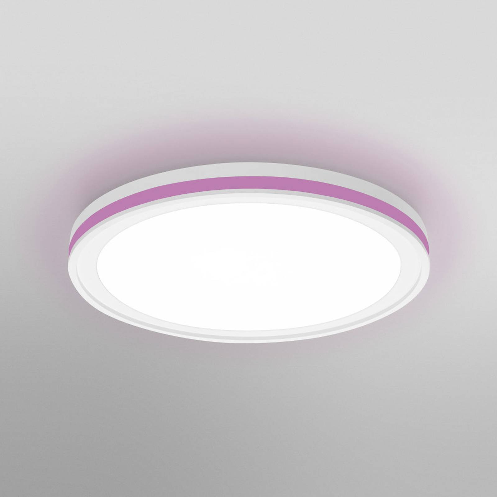 Orbis Circle LED plafondarmatuur met zijverlichting en LEDVANCE SMART+ WiFi technologie De Orbis Circle LED plafondarmatuur ziet eruit alsof ze uit drie boven elkaar liggende ringen bestaat. Hij heeft twee lichtbronnen die rechtstreeks naar beneden en zijdelings de kamer in schijnen. De twee lichtbronnen kunnen onafhankelijk van elkaar worden bediend. Dankzij zijn ronde vorm en de discrete kleurstelling kan hij moeiteloos in verschillende ruimten worden geïntegreerd. De helderheid, lichtkleur en kleurtemperatuur kunnen worden aangepast via een app of stemcommando. De plafondlamp is geïntegreerd met de LEDVANCE SMART+ WiFi technologie via WLAN. Technische gegevens / compatibiliteit: – Bedienbaar via LEDVANCE SMART+ WiFi app (met minstens Android 4.4 of iOS 9.0) gratis; maakt voorinstellingen en automatiseringen mogelijk. – Spraakbesturing via Google Assistant of Amazon Alexa mogelijk – RGB en kleurtemperatuur instelbaar: 3.000 K – 6.500 K – dimbaar – Netwerk protocol: WiFi