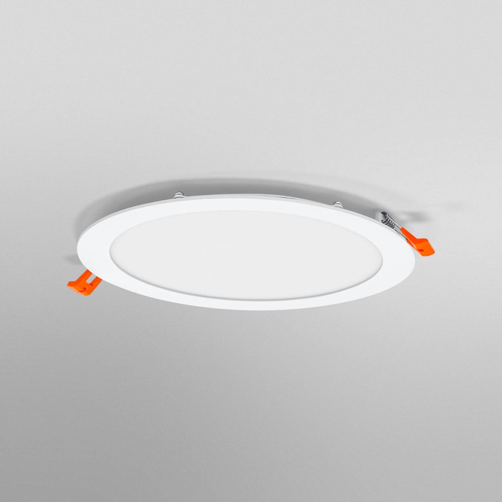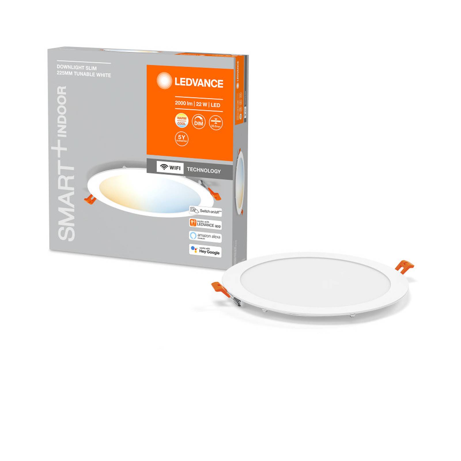 LED-inbouwarmatuur Orbis Downlight Slim met LEDVANCE SMART+ WiFi-technologie De LED-inbouwarmatuur Orbis Downlight Slim overtuigt door haar slanke vorm en is ideaal voor plafonds met weinig ruimte. De armatuur is gemaakt van kunststof en kan bijvoorbeeld worden gebruikt voor het verlichten van gangen, gangen of keukens; de driver is geïntegreerd. De helderheid kan worden gewijzigd via een app en spraakopdrachten, en het is ook mogelijk om de kleurtemperatuur aan te passen van warm tot daglichtwit. De integratie gebeurt met de LEDVANCE SMART+ WiFi-technologie via WLAN. – Bedienbaar via LEDVANCE SMART+ WiFi app (met minstens Android 4.4 of iOS 9.0) gratis; maakt voorinstellingen en automatisering mogelijk. – Spraakbesturing via Google Assistant of Amazon Alexa mogelijk (vereist respectief smart home-systeem). – Kleurtemperatuur instelbaar: 3.000 K – 6.500 K – dimbaar – Netwerk protocol: WiFi 2.4 GHz