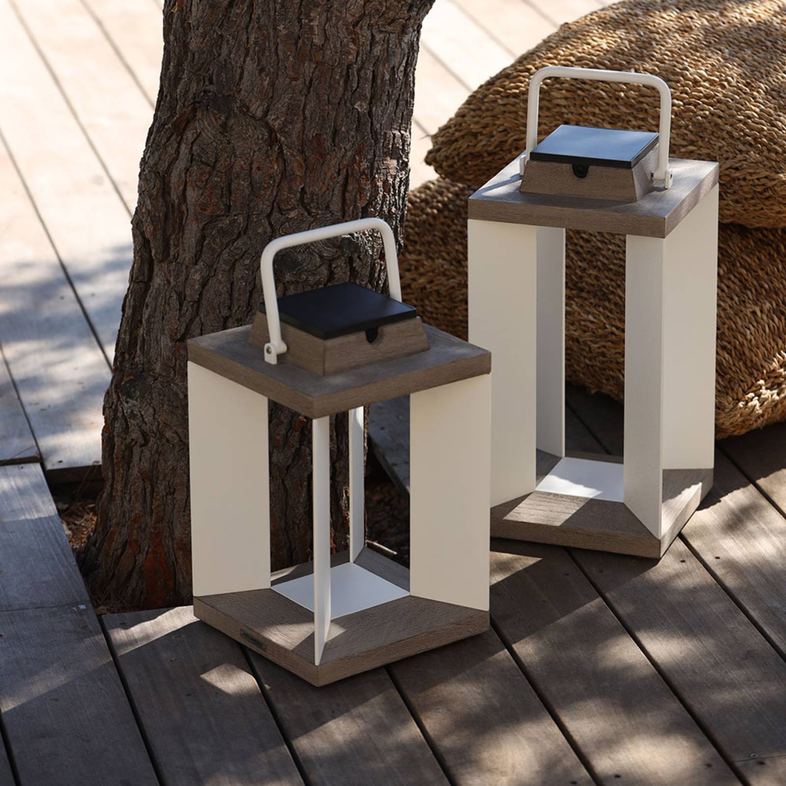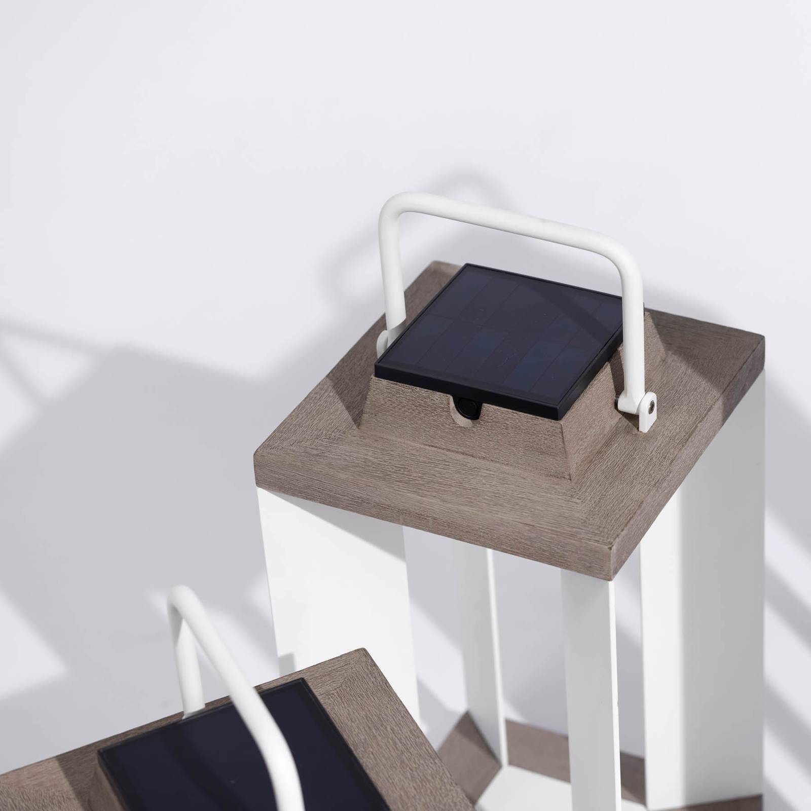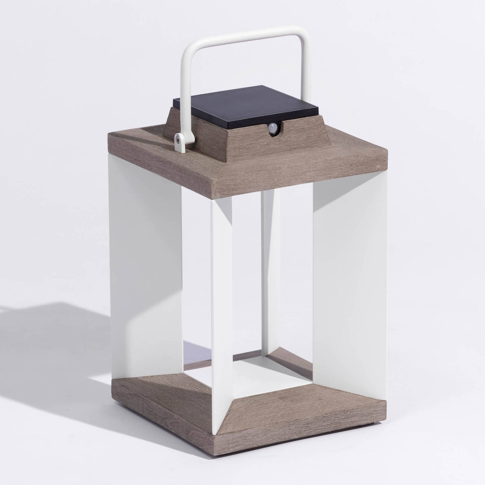 Modern vormgegeven LED-zonnelantaarn Teckalu met bewegingsmelder Naast zijn moderne uiterlijk biedt de Teckalu LED-zonnecollector vele mogelijkheden die hem tot een decoratief en tegelijkertijd zeer functioneel lichtaccessoire voor de woning maken. Op het terras, in de voortuin, als lichtbron naast de ingang of voor de caravan: Teckalu is een energiezuinige en decoratieve lichtbron. Omdat er een bewegingsdetectiesensor is geïnstalleerd, wordt het licht alleen ingeschakeld als het nodig is. Teckalu kan tot 200 uur schitteren. De oplaadmogelijkheden zijn ofwel opladen via het zonnepaneel ofwel opladen via het lichtnet met behulp van een USB-kabel. Gemaakt van geëxtrudeerd, gepoedercoat aluminium en Duratek. Duratek: Het teakhout is uiterst gemakkelijk te onderhouden. Het werd eerst krachtig geborsteld om een gestructureerde afwerking te verkrijgen. Na een eerste laag waterdichte primer werden vervolgens vijf lagen grijze afwerking aangebracht. Dit proces beschermt het hout tegen weersinvloeden, UV-stralen en diverse vlekken zoals wijn, koffie of olie. De grijze kleur onderstreept de hedendaagse chique. Onderhoud: Niet oliën. Schoonmaken met zeepwater. – dimbaar – Beschermingsklasse IP55 (stofdicht en spatwaterdicht)
