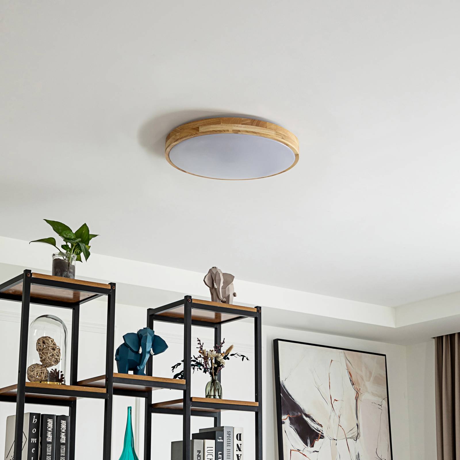 Houten plafondlamp Innes met RGBW en dimfunctie Innes is rond en heeft een opvallend ontwerp. Ze is gemaakt van kunststof en hout, wat voor een opvallend contrast zorgt. Het heeft permanent geïnstalleerde LED’s die continu kunnen worden gedimd en hun lichtkleur kunnen veranderen (3.000 K – 6.500 K + meerkleurig). Dit alles wordt geregeld met de gratis Tuya (beschikbaar voor iOS en Android), waarmee het bijzonder eenvoudig is om de verlichting aan te passen. Innes is ideaal voor het verlichten van een woonkamer of hal.