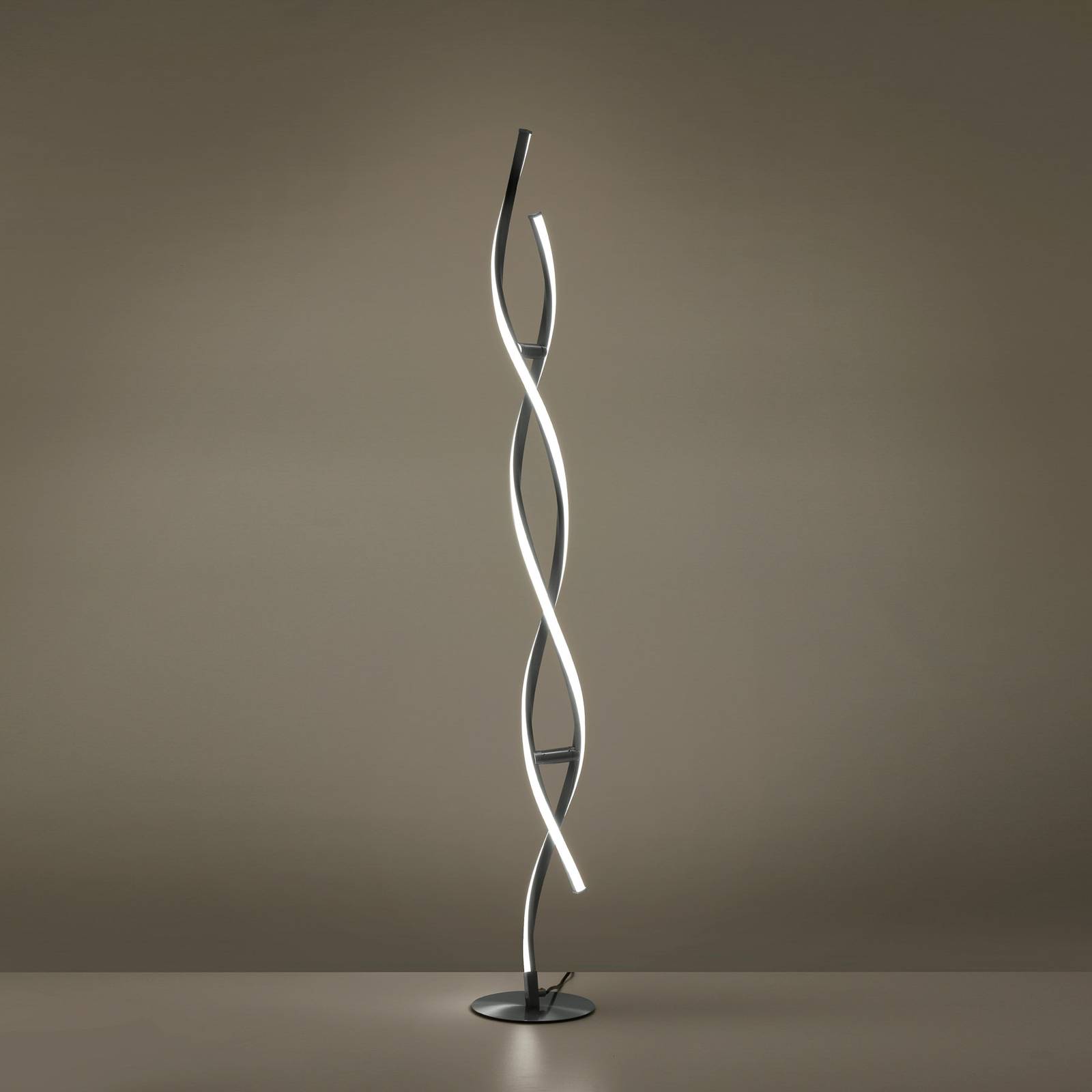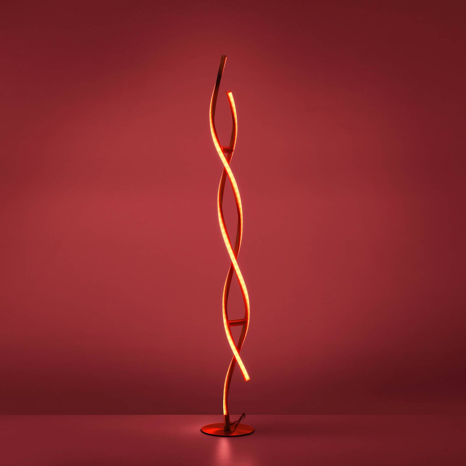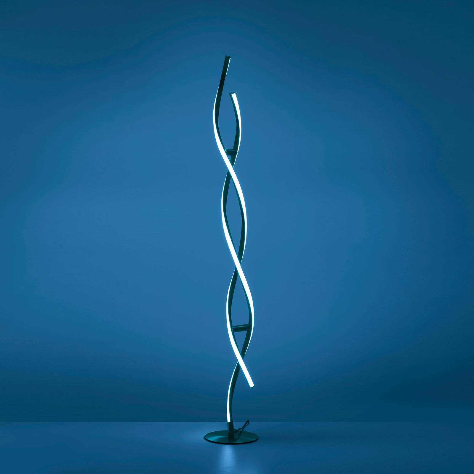 LOLAsmart Swing LED vloerlamp als een dubbele helix De Swing LED vloerlamp is een visueel en functioneel ultramoderne lichtbron voor de woonkamer. Boven de ronde basis steken twee spiraalvormig gebogen metalen profielen uit, elk aan één kant voorzien van een LED-strip. De leds kunnen worden gedimd en in kleurtemperatuur worden geregeld van 2.700 K tot 5.000 K, alsmede in kleurgradaties worden geschakeld. Dit gebeurt met de meegeleverde afstandsbediening, waarmee ook voorgeprogrammeerde lichtscènes kunnen worden geselecteerd. Om de vloerlamp te bedienen via app op de tablet/smartphone of via spraakcommando, kan deze via WLAN worden aangesloten. Speciale kenmerken / compatibiliteit: – kan worden bediend met de meegeleverde afstandsbediening (incl. geheugenfunctie). Geheugenfunctie) – bedienbaar met de gratis Medion LIFE App, die via het WLAN rechtstreeks met de lamp communiceert – bedienbaar via Amazon Alexa (elke generatie; Medion LIFE Skill) en Google Home – RGB-kleurregeling en witlichtregeling – dimbaar via afstandsbediening, app of spraakassistent – diverse voorgeprogrammeerde verlichtingsscènes, zoals zonsondergang, feestverlichting of relax