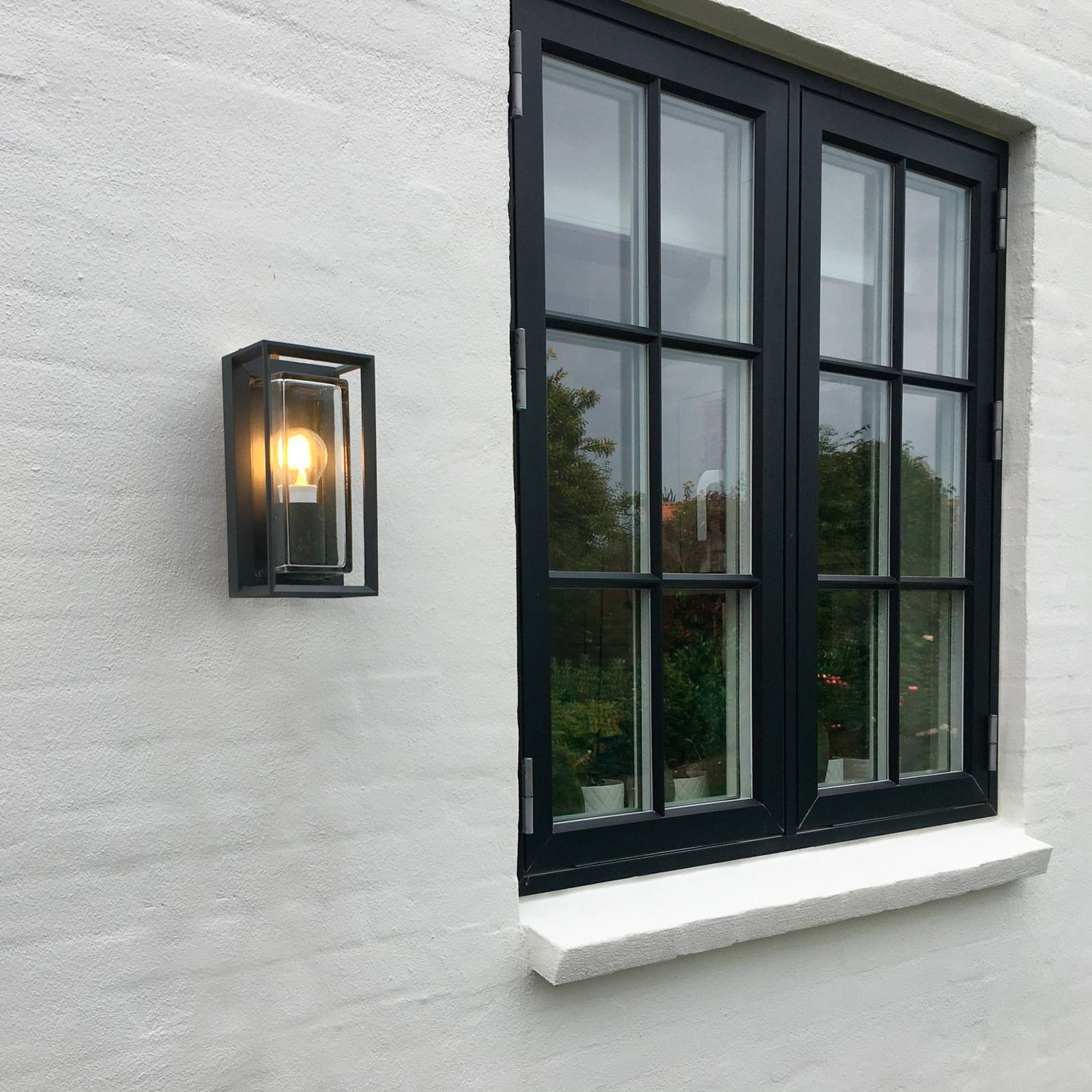 Buitenwandlamp Loke in zwart met naar boven gerichte fitting De Loke wandlamp voor buiten is modern en toch decoratief. Het is gemaakt van aluminium in zwarte lak en ontworpen als een open kubus. Een mogelijkheid tot individuele vormgeving ontstaat door de juiste keuze van de lichtbron (zie toebehoren). De lamp zit in een naar boven gerichte lamphouder en wordt beschermd door transparant glas, zodat het licht aan alle kanten ongehinderd wordt uitgestraald. – Beschermingsklasse: IP65