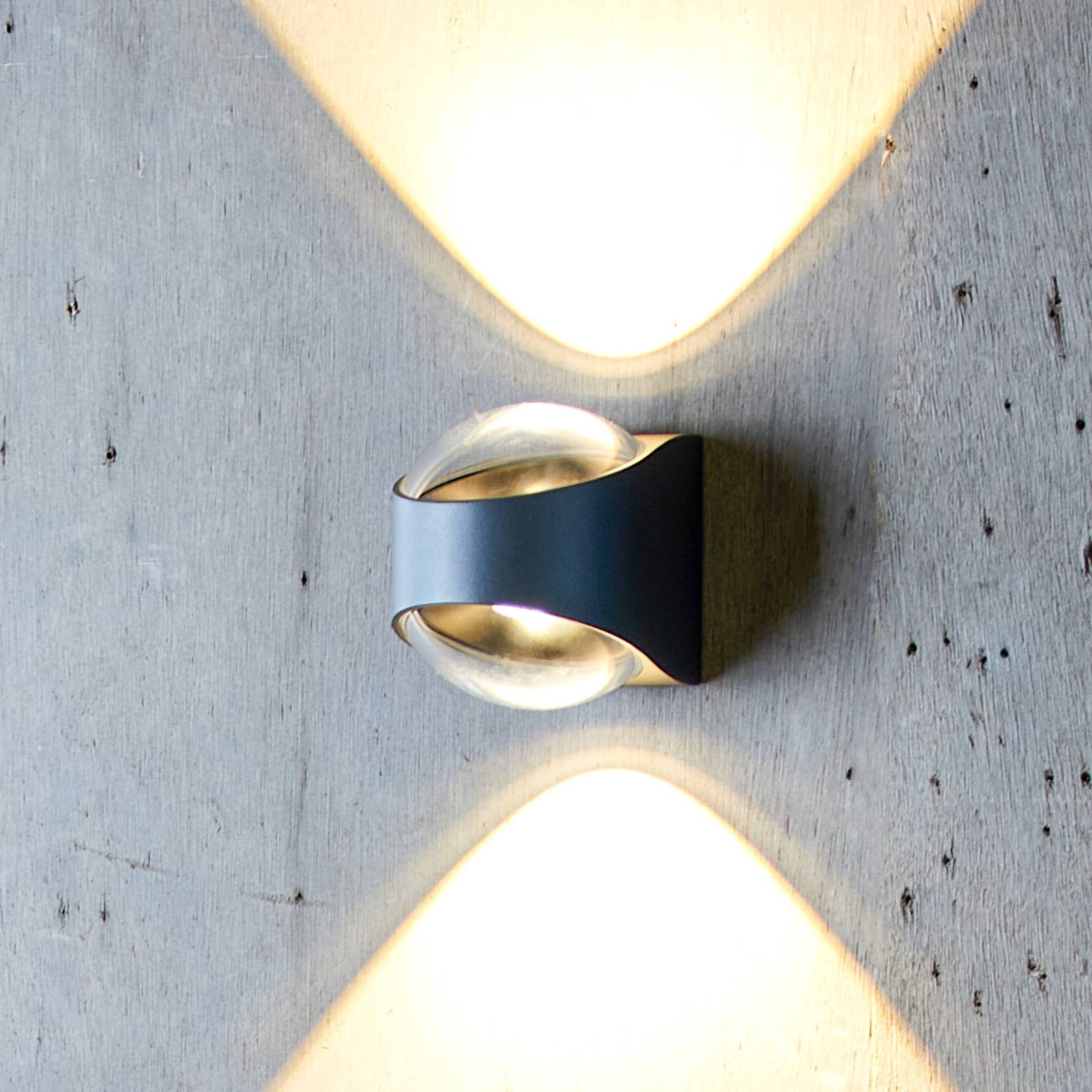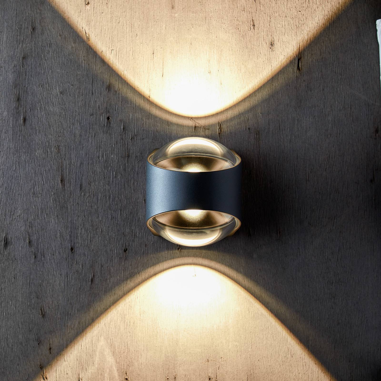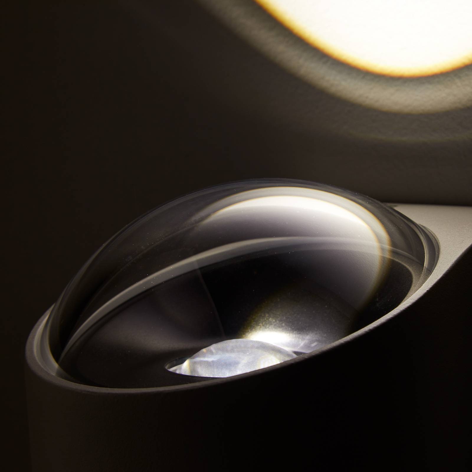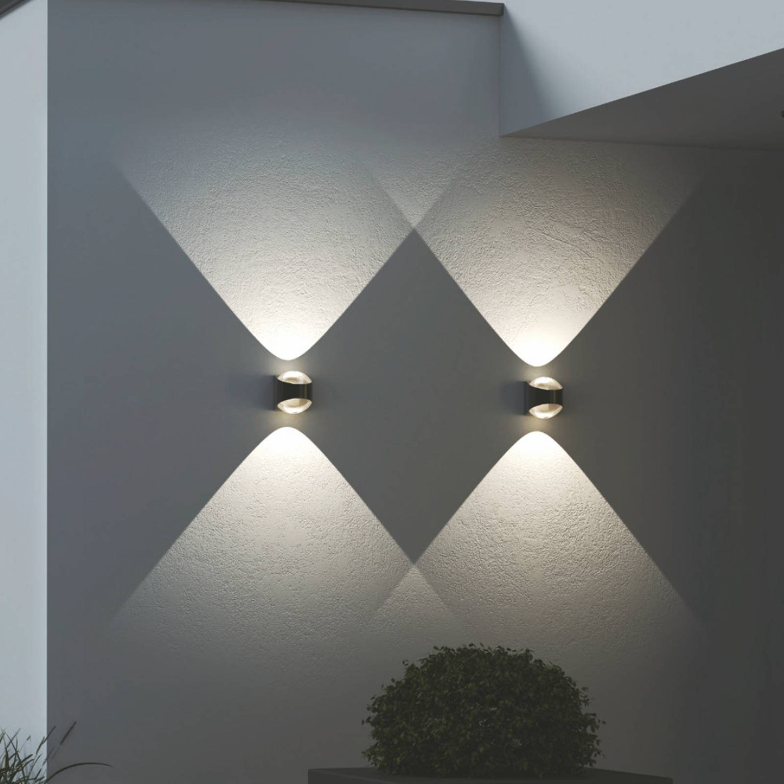 Moderne up-and-down wandlamp Saga voor binnen en buitenMet de combinatie van glas en aluminium, het prachtig op elkaar afgestemde design en het karakteristieke lichteffect belichaamt de LED wandlamp Saga pure elegantie. Twee binnenin geïnstalleerde LED-lichtbronnen stralen warm wit licht naar boven en beneden uit, dat door lenzen en heldere kappen van glas in een hoek van 80° wordt uitgestraald. Aantrekkelijke, scherp gedefinieerde lichtkegels op de muur zijn het resultaat. Saga verrijkt niet alleen woonkamers en lounges, maar kan dankzij de straalwaterbescherming ook in badkamer- en wellnessruimten en aan de gevel worden gebruikt.- Beschermingsklasse: IP65