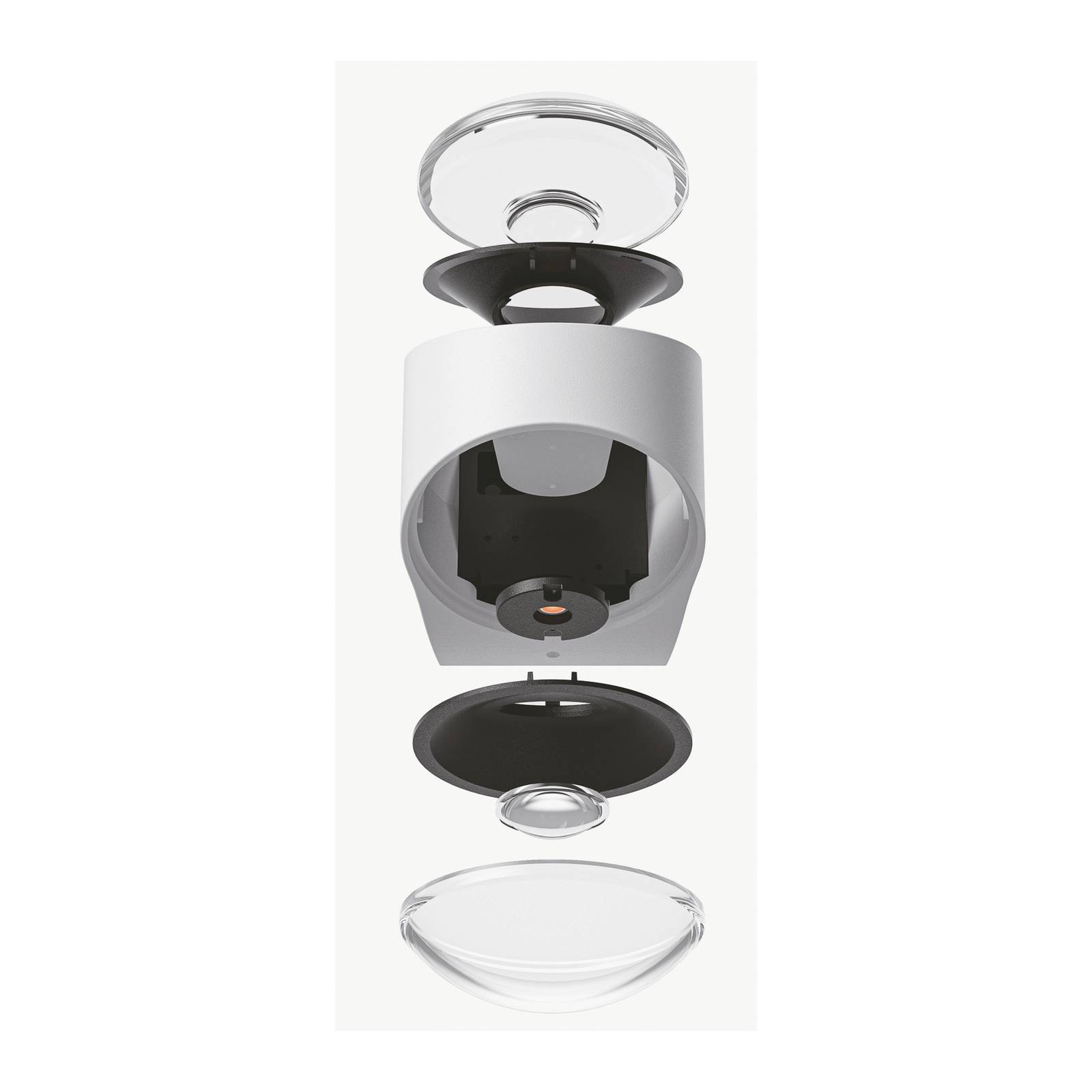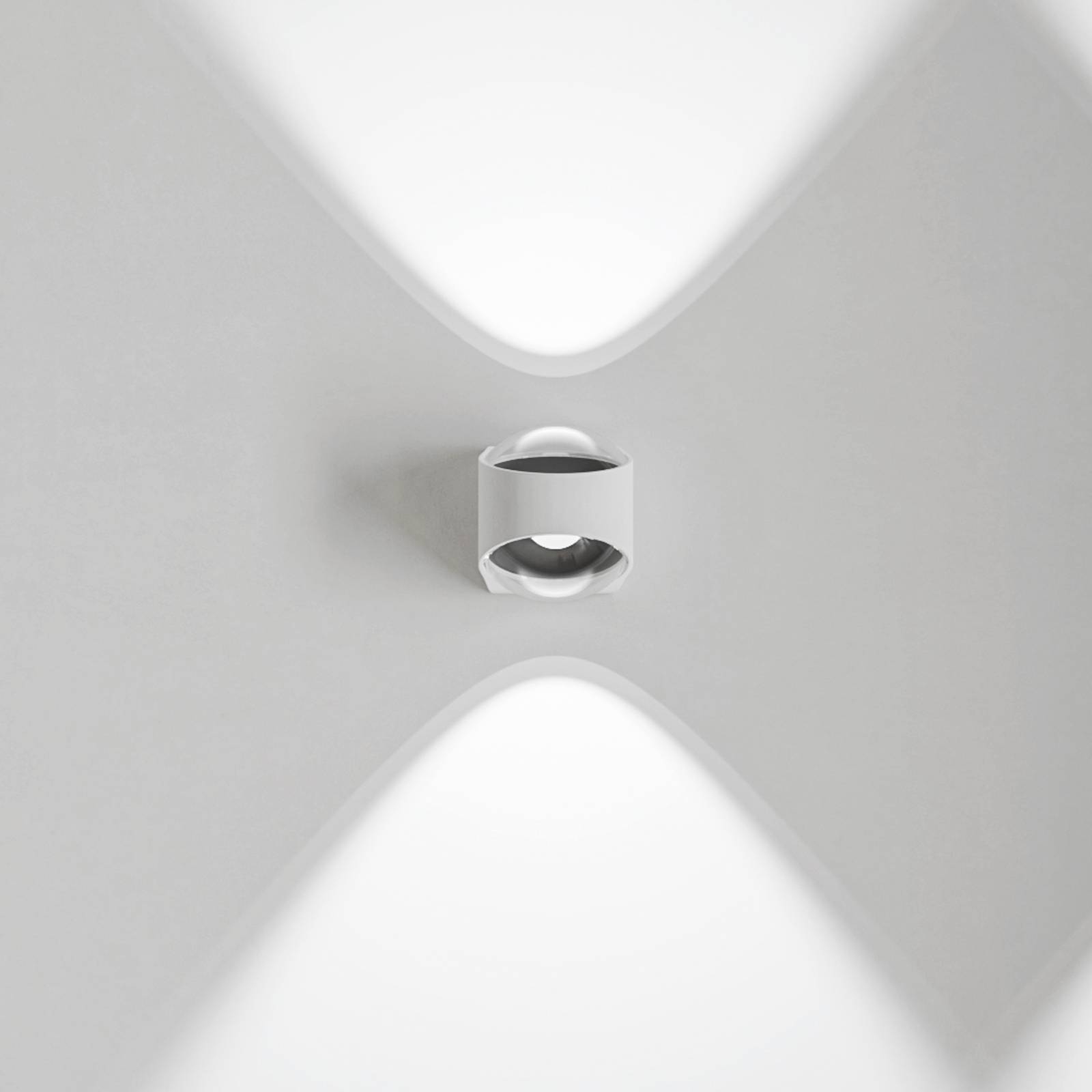 Moderne up-and-down wandlamp Saga voor binnen en buitenMet de combinatie van glas en aluminium, het prachtig op elkaar afgestemde design en het karakteristieke lichteffect belichaamt de LED wandlamp Saga pure elegantie. Twee binnenin geïnstalleerde LED-lichtbronnen stralen warm wit licht naar boven en beneden uit, dat door lenzen en heldere kappen van glas in een hoek van 80° wordt uitgestraald. Aantrekkelijke, scherp gedefinieerde lichtkegels op de muur zijn het resultaat. Saga verrijkt niet alleen woonkamers en lounges, maar kan dankzij de straalwaterbescherming ook in badkamer- en wellnessruimten en aan de gevel worden gebruikt.- Beschermingsklasse: IP65