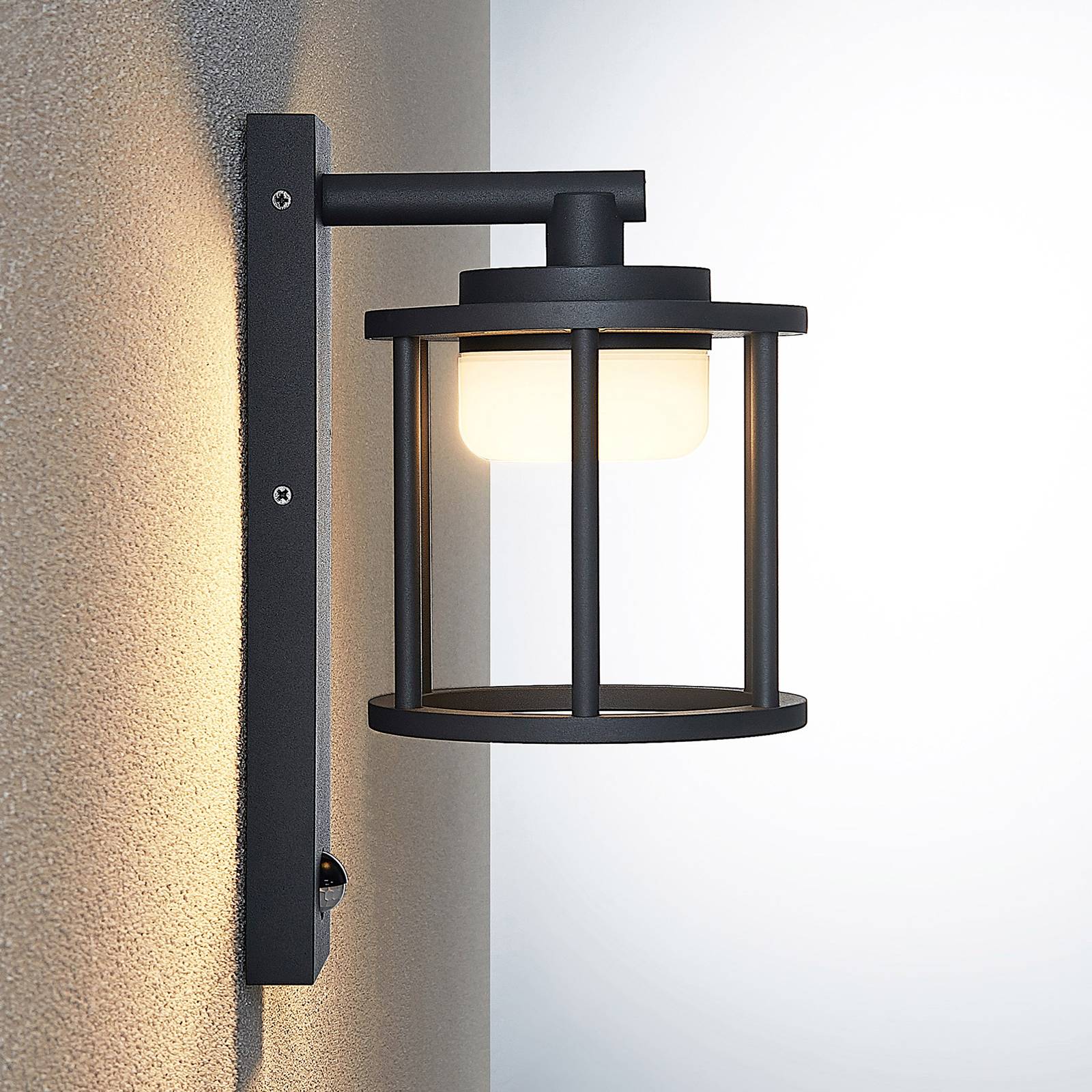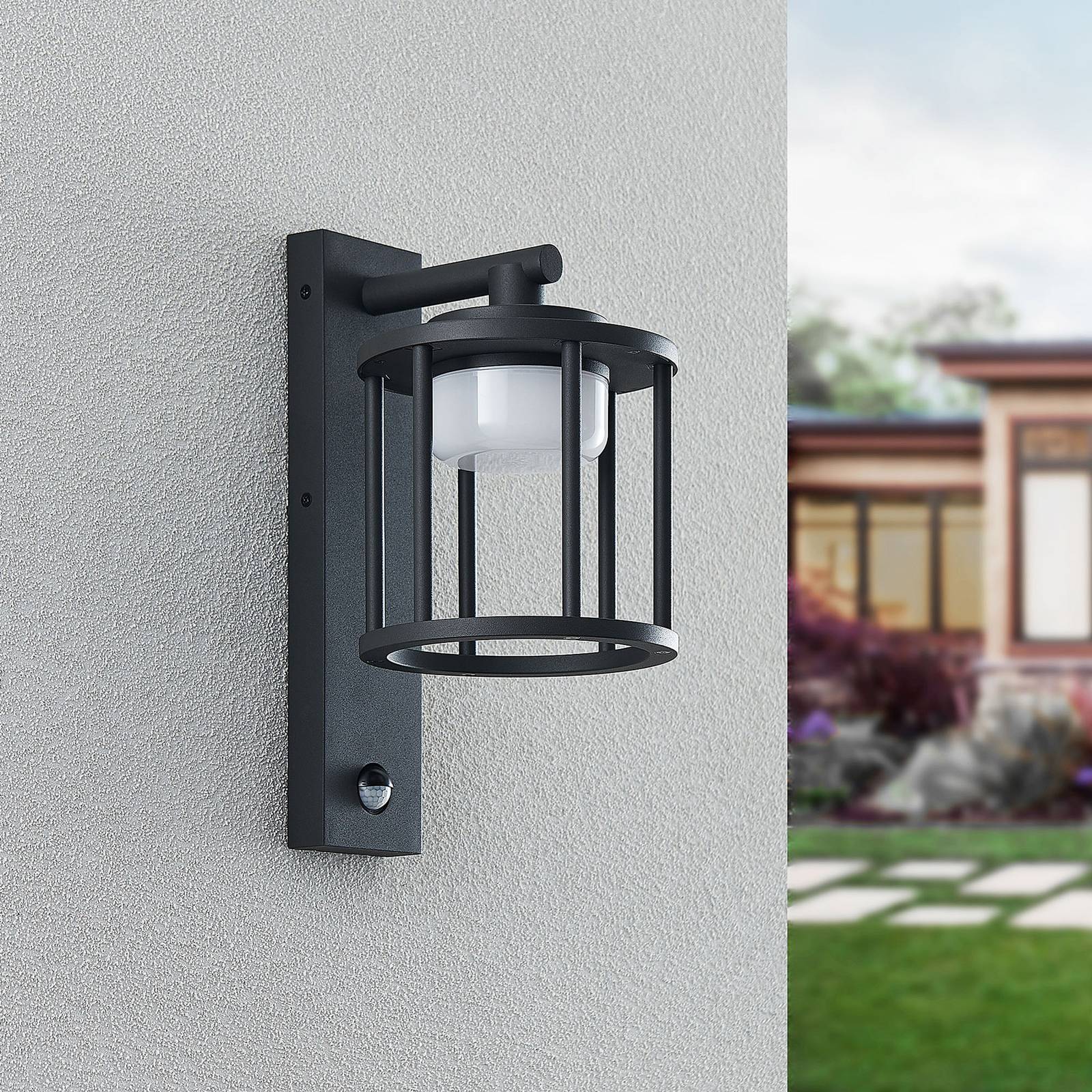 Concise Buitenwandlamp Benerike in Donkergrijs met Bewegingssensor De Benerike buitenwandlamp combineert een elegant design met praktische functies. Hij is gemaakt van donkergrijs aluminium en heeft een kunststof diffuser. De vorm van de lampenkap doet denken aan een klassieke lantaarn en kan worden voorzien van de passende lichtbronnen. Zo kan de keuze van lichtintensiteit en lichtkleur worden aangepast aan de persoonlijke behoeften. Bovendien heeft de Benerike buitenwandlamp een bewegingssensor die een ongecompliceerde bediening van het licht mogelijk maakt. Voor een harmonieuze totaalindruk kan Benerike worden gecombineerd met andere armaturen uit de serie. – Hoek van bereik 120 – Opsporingsbereik 6-10m