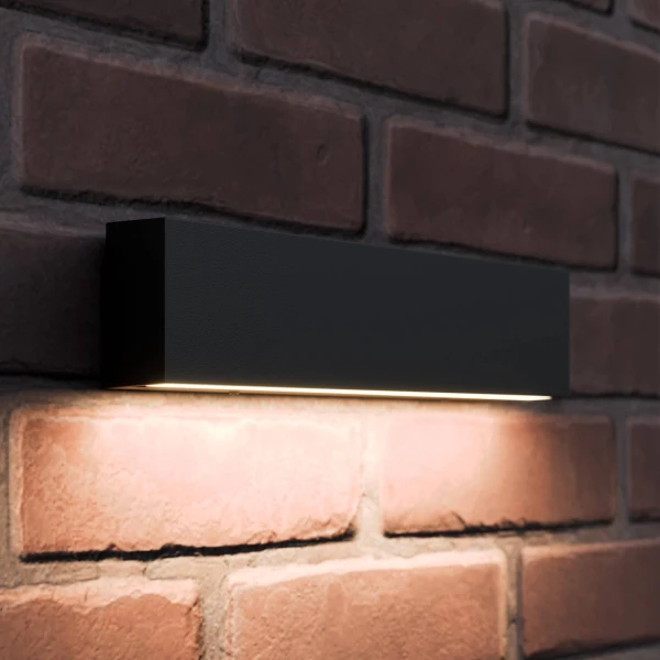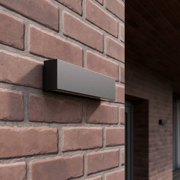 Rechthoekige LED buitenwandlamp Elvira Elvira heeft een zeer eenvoudig ontwerp waardoor ze niet alleen bij veel stijlen past, maar er ook uiterst modern uitziet. Het oppervlak van de aluminium behuizing is grafietgrijs gelakt. De LED’s zijn een merkproduct van Toshiba en gaan lang mee en zijn energiezuinig.