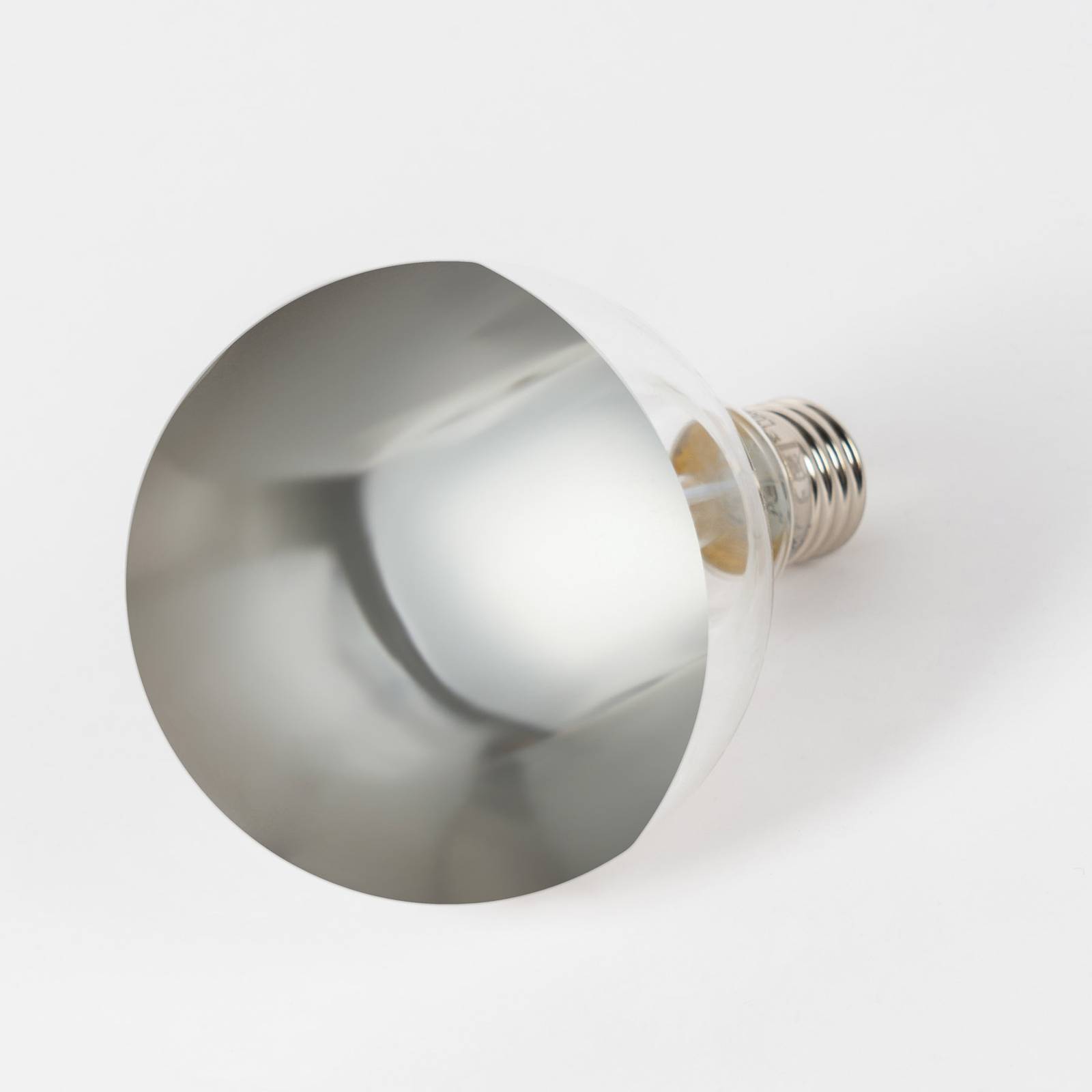 E27 LED-gloeilamp 3,8 W, G95, kopspiegeling in zilver, dimbaar, CRI>90, in set van 2Deze zilveren kopspiegellamp is zeer geschikt als decoratieve lichtbron met aangenaam licht voor de woonruimte. Met de bolvorm heeft hij grotere afmetingen dan een gewone gloeilamp en het bovenste gedeelte is zilverkleurig gespiegeld, terwijl de rest van de lamp in filamentoptiek is uitgevoerd. De LED-lamp kan worden gedimd en de eigenschappen maken haar zeer geschikt voor open armaturen. De kleurweergave van deze LED-lamp is bijzonder goed.Technische gegevens:- CRI>90- dimbaar- bolvorm- zilveren kop- gespiegeld- 2.700 K- de lamp wordt geleverd in een praktische set van 2 stuks