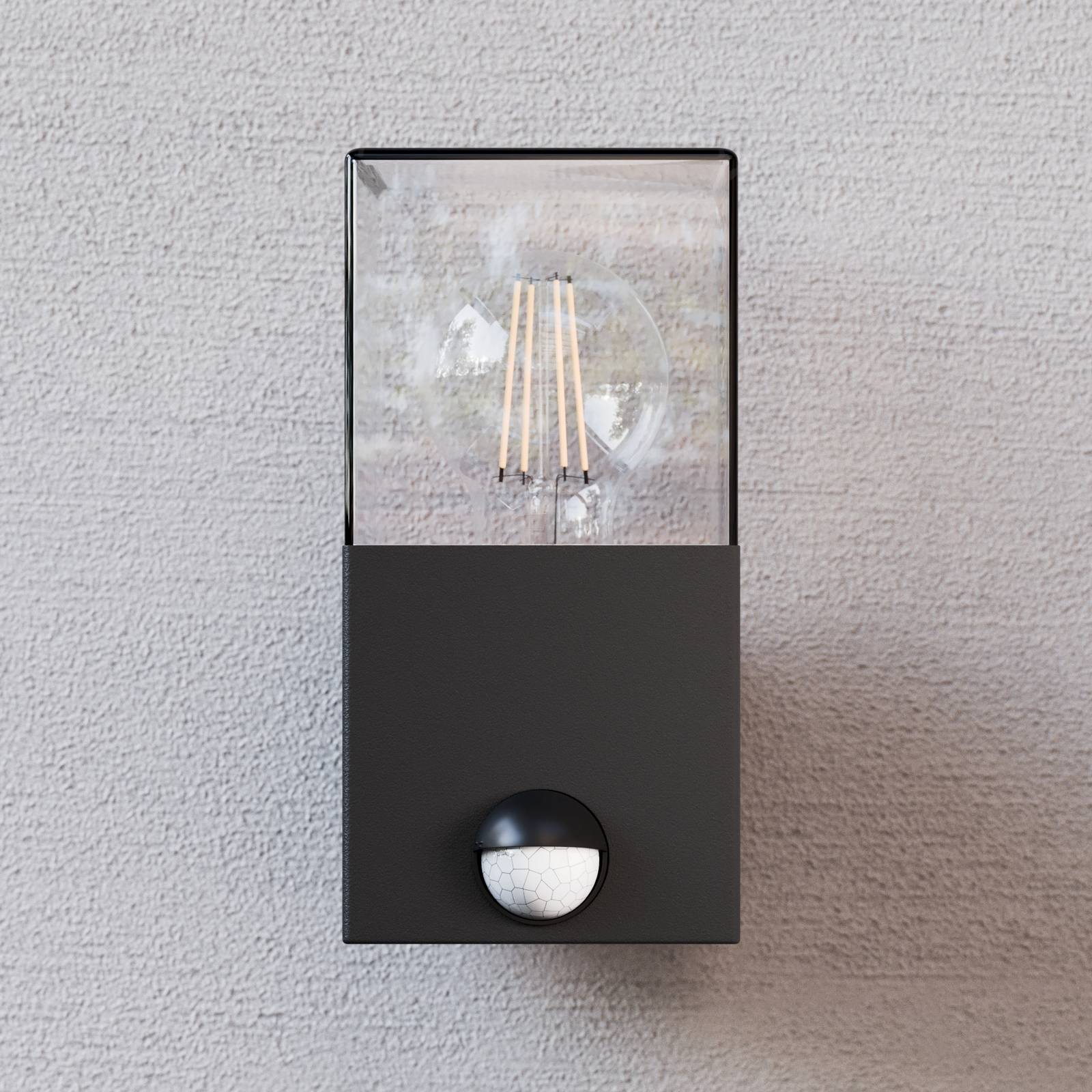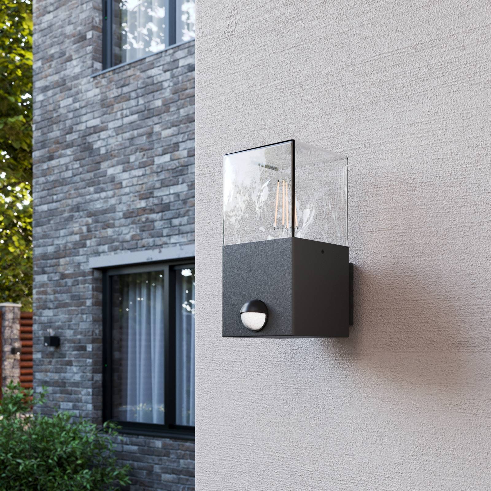 Keke-buitenwandlamp met betrouwbare bewegingsmelder De Keke-buitenwandlamp geeft licht wanneer dat nodig is. Dit wordt gegarandeerd door een geïntegreerde sensor die bewegingen detecteert en de armatuur in de eerder ingestelde tijd in- en uitschakelt. De lichtduur kan variëren van 8 seconden tot 8 minuten. Het detectiebereik van de sensor is 6-10 meter en de detectiehoek is 120°. De moderne, hoekige behuizing van de Keke-buitenwandlamp is gemaakt van aluminium en is samen met de transparante, rokerige grijze kunststofkap robuust en bestendig, zodat wind en weer geen invloed hebben op de armatuur.