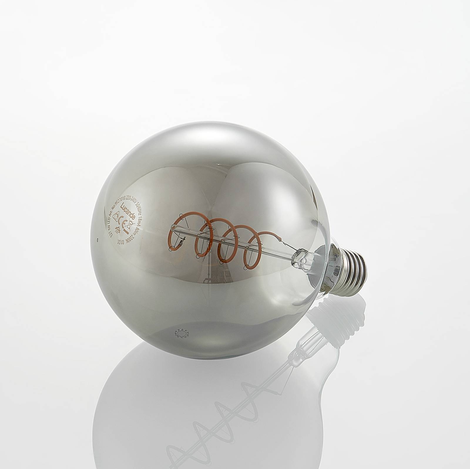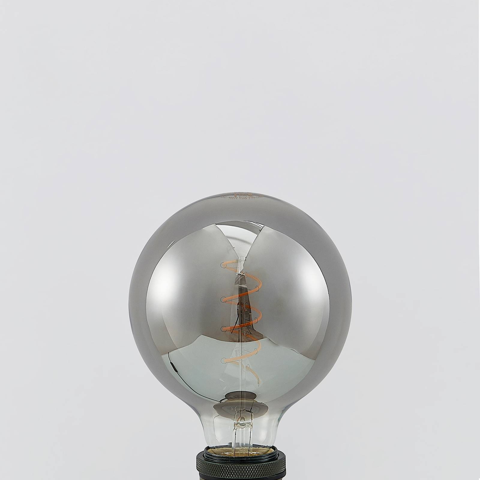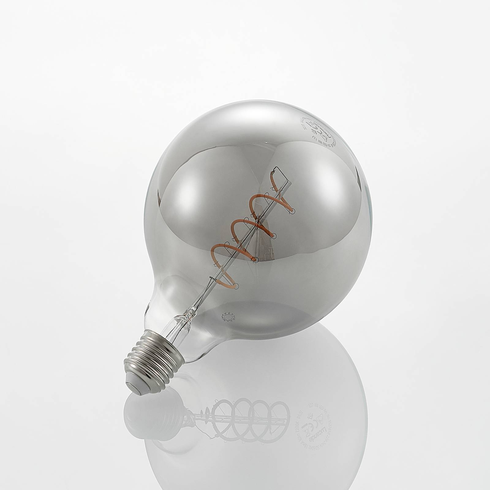 Trendy look van gerookt glas en efficiënte LED-technologie. Deze E27 LED-bollamp inspireert zowel met zijn chique virtuositeit als met de energiebesparende technologie. Indien gewenst kan de lamp worden gedimd via een fase- of fase-afsnijdingsdimmer en is met name kostelijk voor armaturen met een open kap of zonder kap.