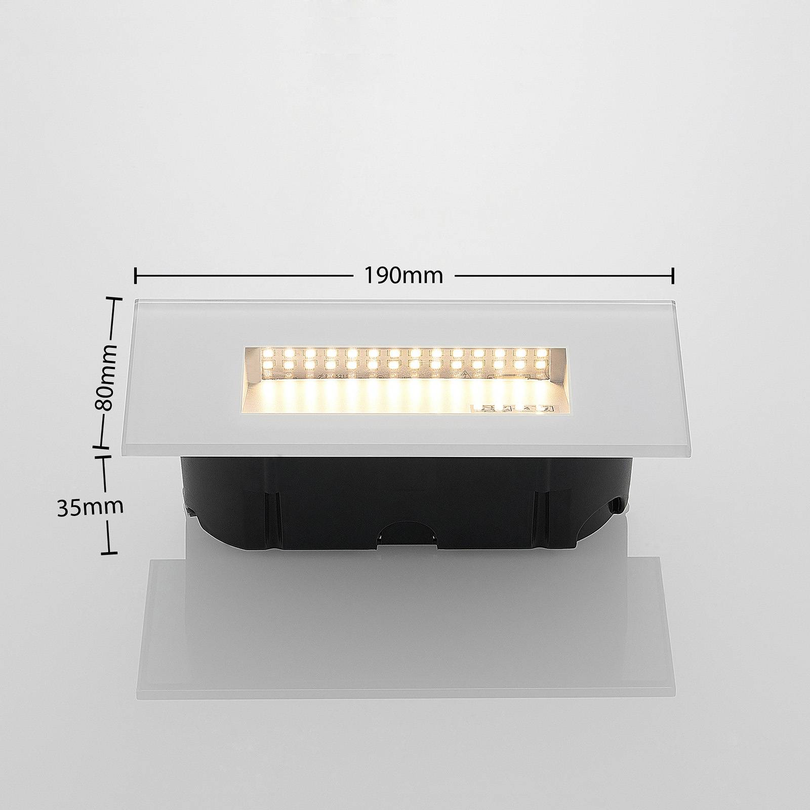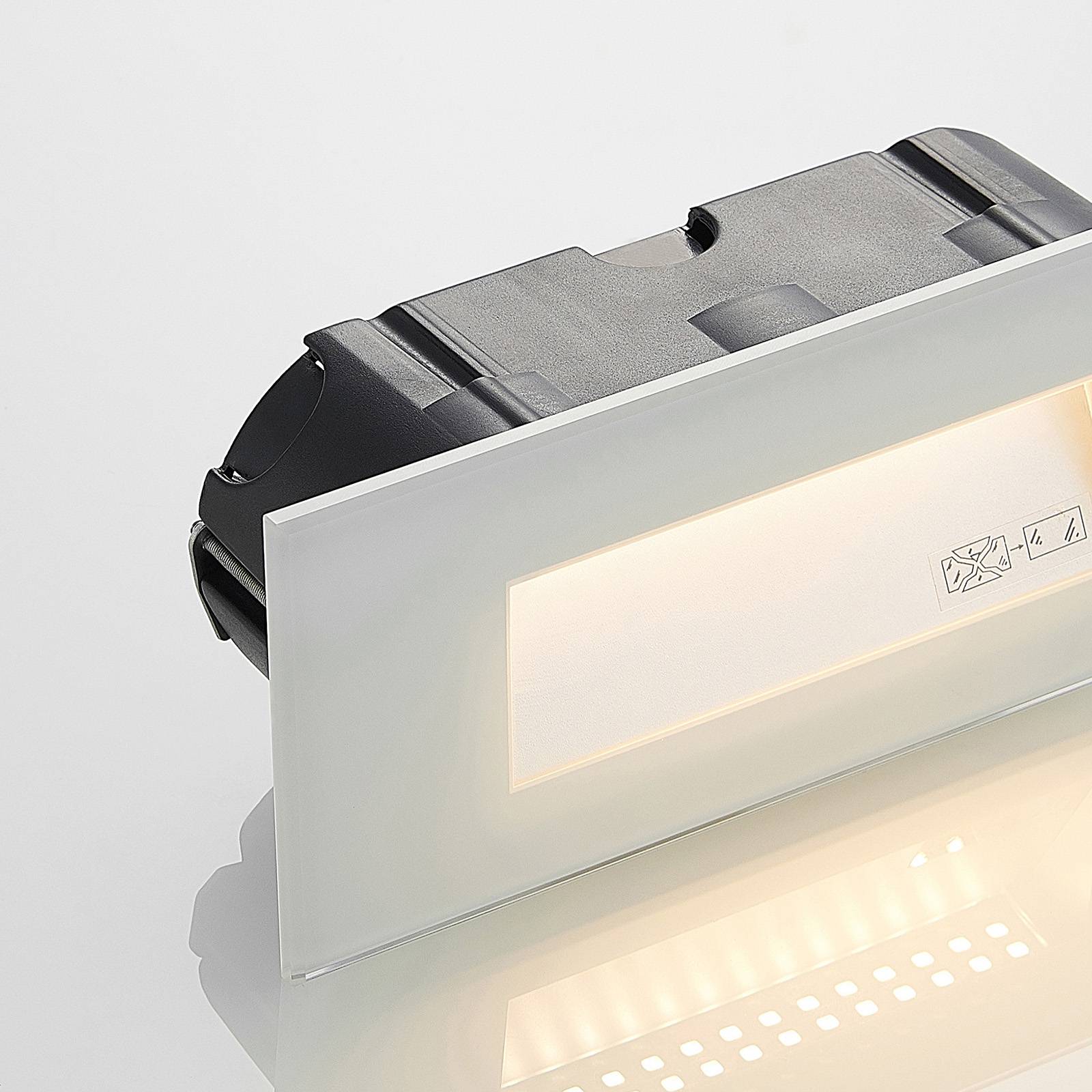 LED inbouw wandarmatuur Jody in wit polycarbonaat De LED-inbouwwandarmatuur Jody steunt op de helderheid van geometrische vormen en een tijdloos kleurenschema dat gemakkelijk kan worden gecombineerd en geïntegreerd in verschillende stijlen. De lamp is dus veelzijdig en overtuigt met haar veilige verlichtingsconcept. De intelligente combinatie van gehard veiligheidsglas en spuitgegoten polycarbonaat maakt de compacte lamp tot een robuuste en resistente verlichtingsoplossing voor buitengebruik. Krassen of zelfs stoten kunnen deze speciaal gebouwde lamp niet beschadigen. Het langwerpige rechthoekige ontwerp van de lamp draagt ook bij tot een gelijkmatig lichtpatroon.