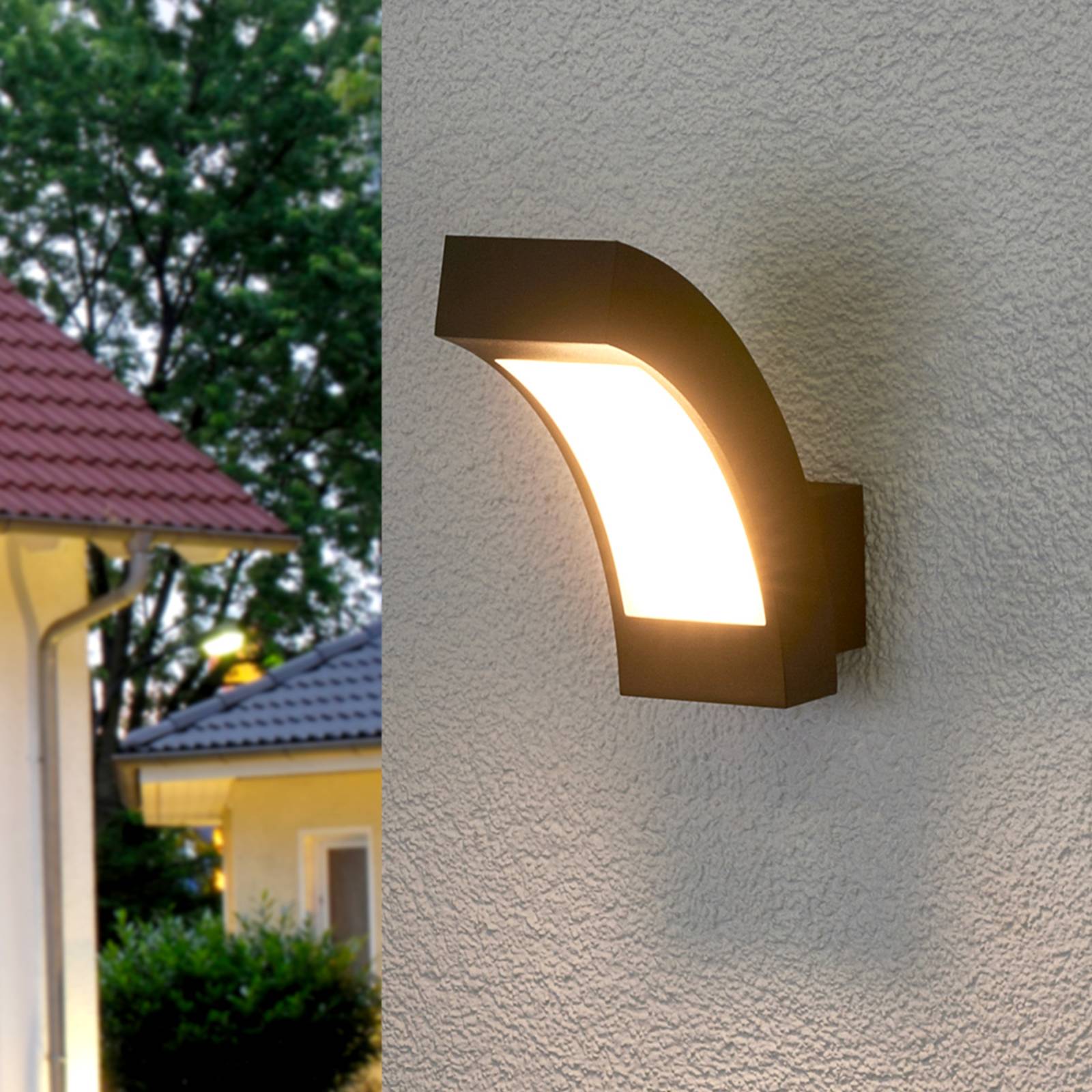 LED buiten wandlamp Lennik naar beneden gekanteld De LED buiten wandlamp Lennik is een moderne lamp met een grafietgrijs oppervlak, die overtuigt met een LED-bezetting. Deze lichtbronnen staan niet alleen voor een laag energieverbruik, maar ook voor hun bijzondere duurzaamheid. Uitgaande van de wandhouder is de lampenkop gemaakt van metaal met een grafietgrijs oppervlak, dat wordt aangevuld met een kunststof inzet boven de lampen.