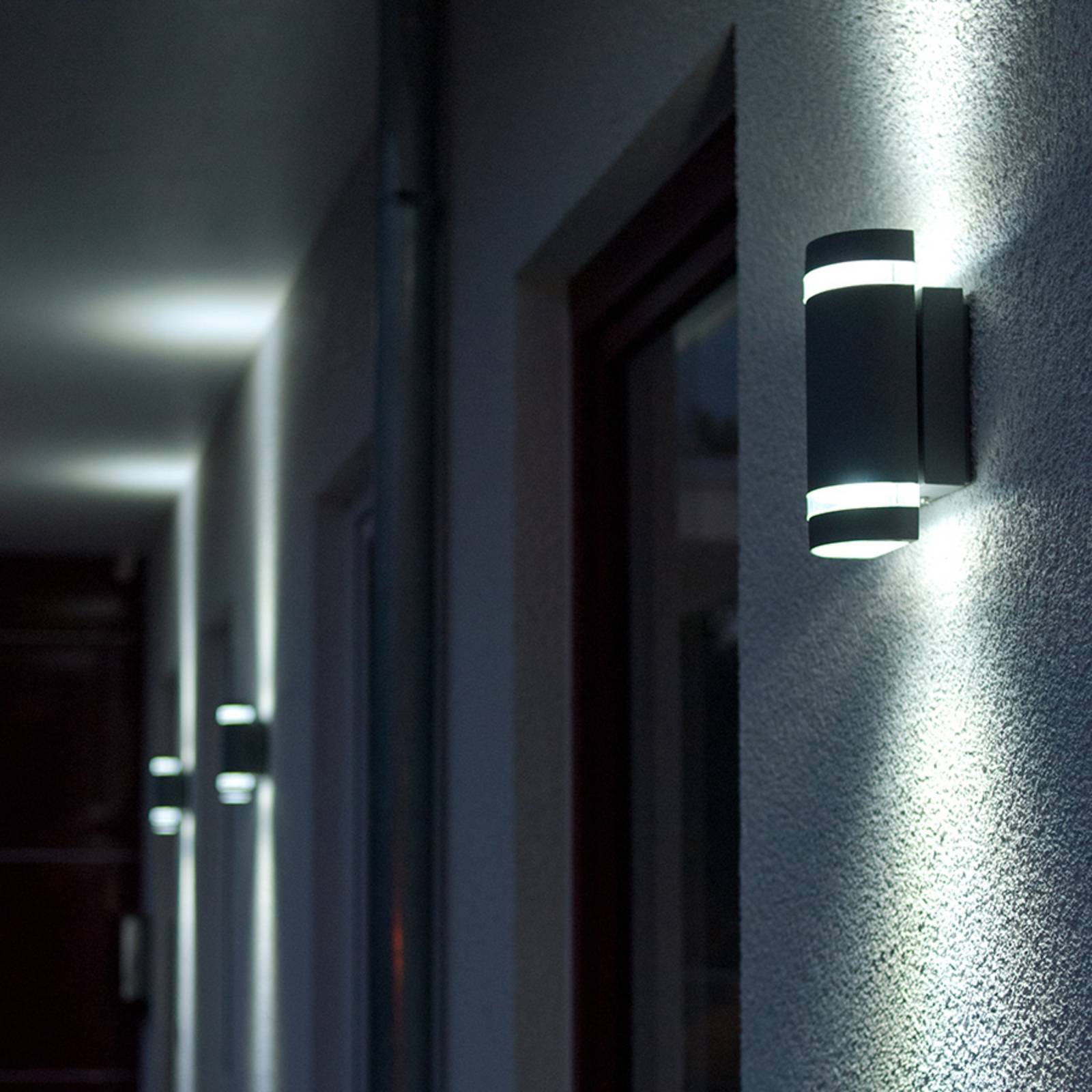 Prachtige Focus design lamp voor buiten Prachtige buitenwandlamp met twee lichtbronnen die elke muur op een bijzondere manier decoreert en bijzondere effecten creëert. Zo creëert FOCUS heel bijzondere Akzenten op balkons of terrassen.