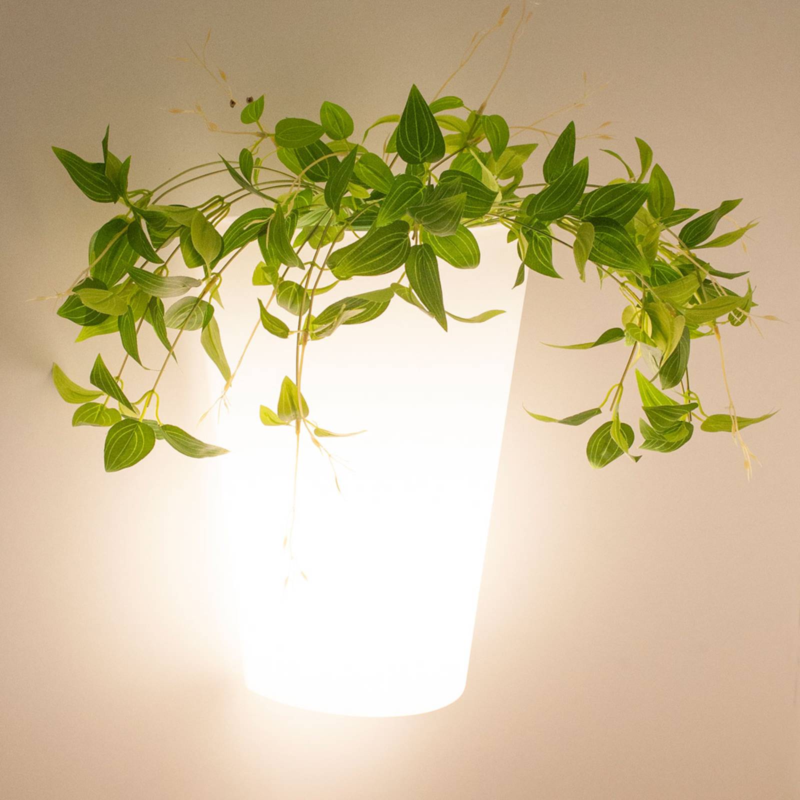 Witte buitenwandlamp Teja met geïntegreerde plantenbak Deze buitenwandlamp Teja is een bijzonder decoratieve lichtbron aan de huismuur bij de ingang of op het terras, omdat zich in het bovenste gedeelte van de polyethyleen behuizing een kleine plantenbak bevindt waarin een decoratieve plant kan worden geplaatst – een hangende groene of bloeiende plant ziet er erg aantrekkelijk uit. Onder de plantenbak bevindt zich de fitting voor een Lamp (LED – MAX. 15 W, niet inbegrepen). De lamp verspreidt het licht gelijkmatig door de PE-behuizing en verlicht een groot gebied rond de armatuur op een niet-verblindende en energiezuinige manier.
