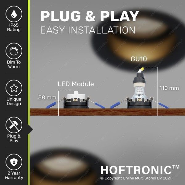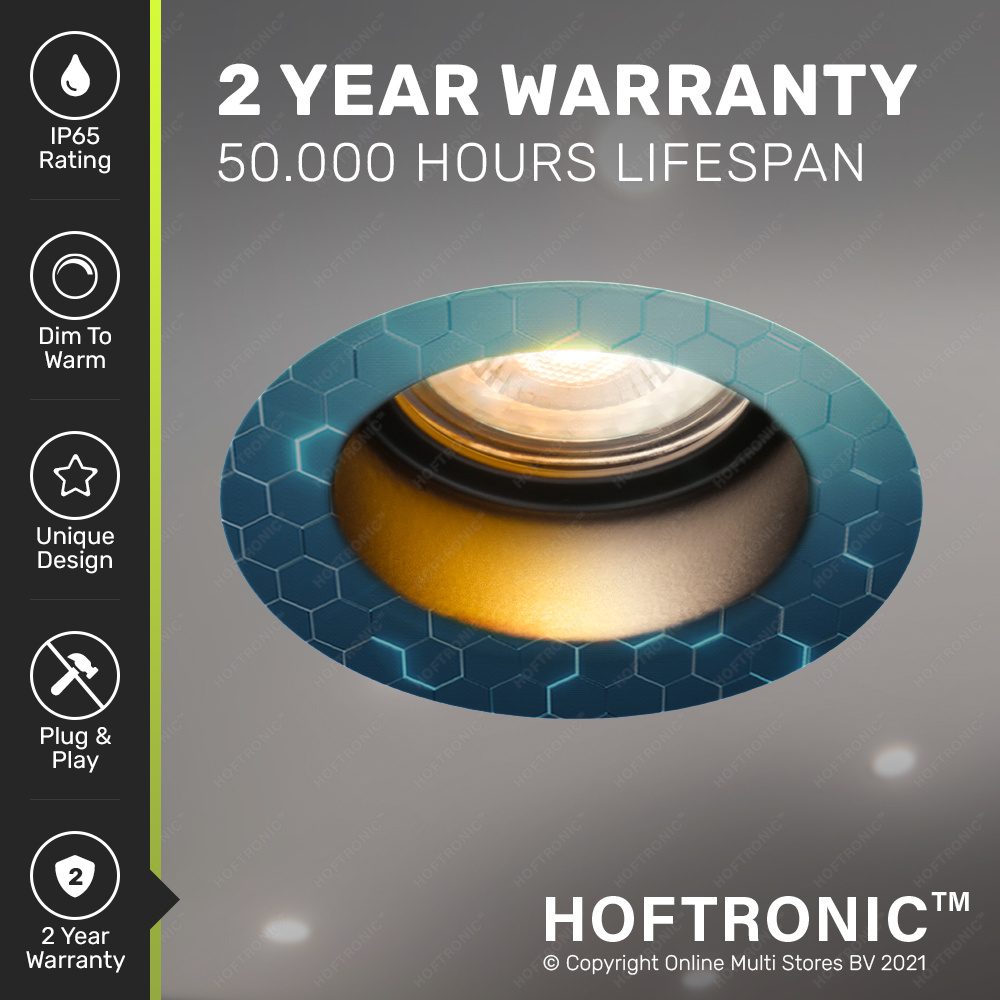 Deze zware kwaliteit inbouwspot is een kwaliteitsproduct van het handelsnaam HOFTRONIC. HOFTRONIC is zowel fabrikant als verkoper van LED verlichting. Hierdoor profiteer jij altijd van de mooiste prijs en voorwaarden. Zo ontvang je op deze inbouwspot maar liefst 2 jaar waarborg. Mocht er in deze 2 jaar iets defect gaan, dan staat er een team getalenteerde productspecialisten voor je klaar. Dat is de veiligheid van HOFTRONIC.