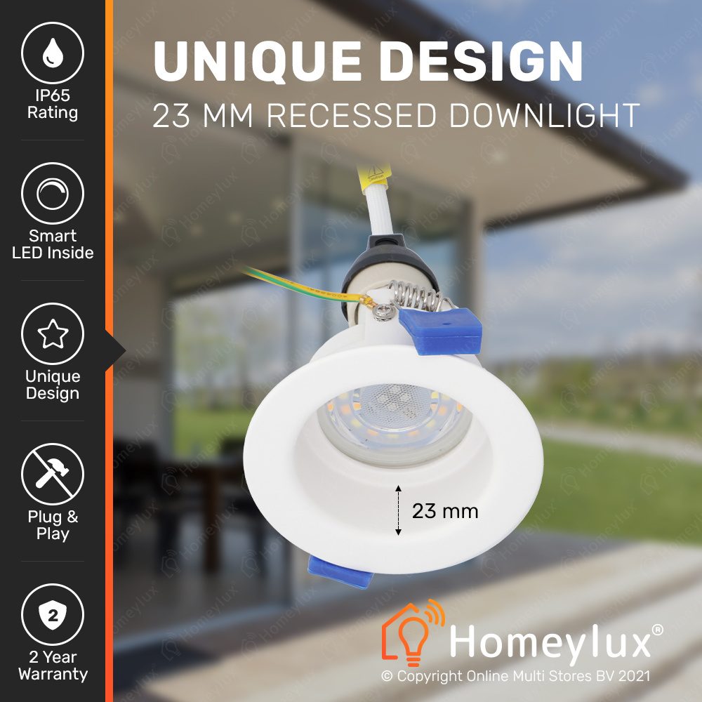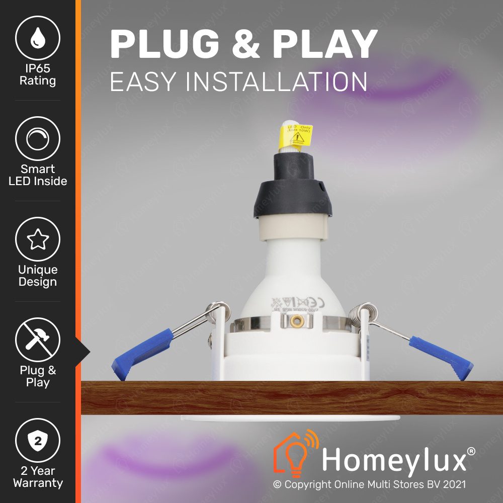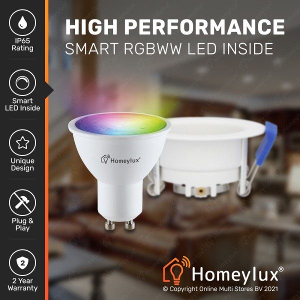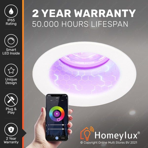 De Mari smart inbouwspot is een smart item van Homeylux. Dit wil zeggen dat het apparaat met de Homeylux App bedient kan worden. De app is comfortabel gratis te downloaden via de Google Play store wanneer je een Android smartphone hebt, of via de Apple Store wanneer je een IOS smartphone hebt. De Mari slimme inbouwspot wordt gekoppeld aan de app via je WIFI netwerk. Zorg ervoor dat je in huis twee meter van je router zit om het slimme apparaat te kunnen koppelen.