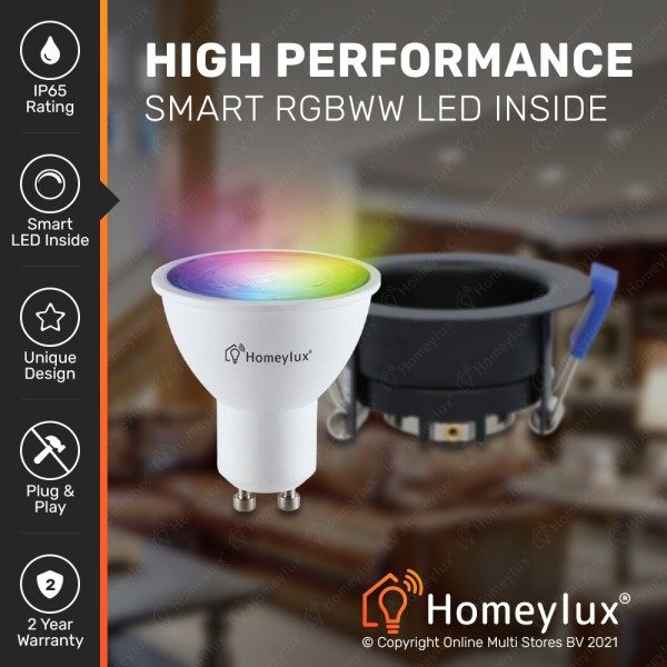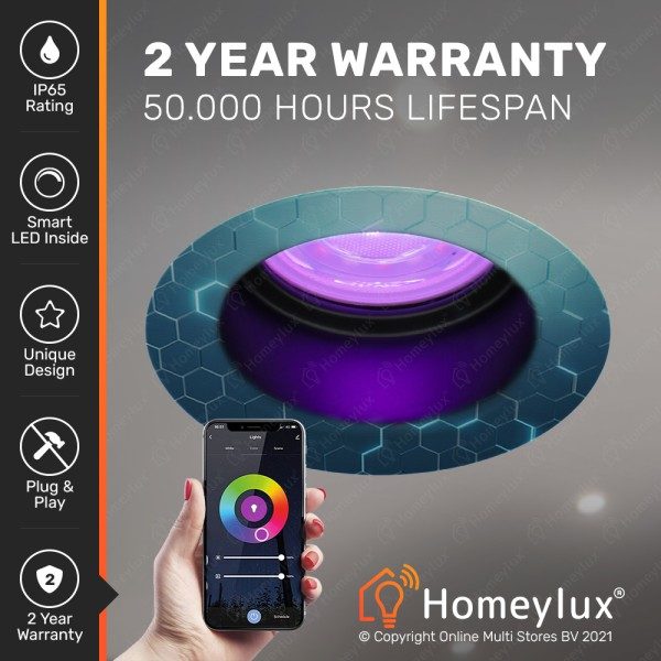De Mari smart inbouwspot is een smart product van Homeylux. Dit wil zeggen dat het apparaat met de Homeylux App bedient kan worden. De app is comfortabel kosteloos te downloaden via de Google Play store wanneer je een Android smartphone hebt, of via de Apple Store wanneer je een IOS smartphone hebt. De Mari slimme inbouwspot wordt gekoppeld aan de app via je WIFI netwerk. Zorg ervoor dat je in huis twee meter van je router zit om het slimme apparaat te kunnen koppelen.
