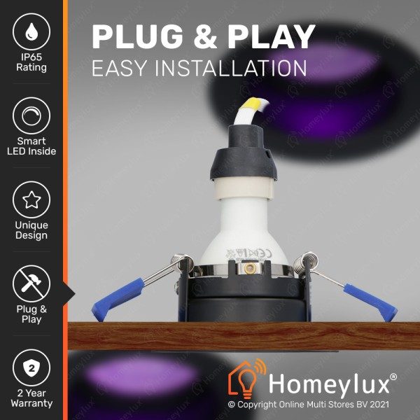 Wanneer de slimme inbouwspots eenmaal gekoppeld zijn aan je WIFI netwerk, kun je ze plekken op de gewenste plek. Let er wel op dat je smart verlichting altijd verbonden moet zijn met je WIFI netwerk, om extreem te kunnen functioneren. Houd dus rekening met de WIFI sterkte op de plekken waar je de slimme verlichting wenst te plaatsen.