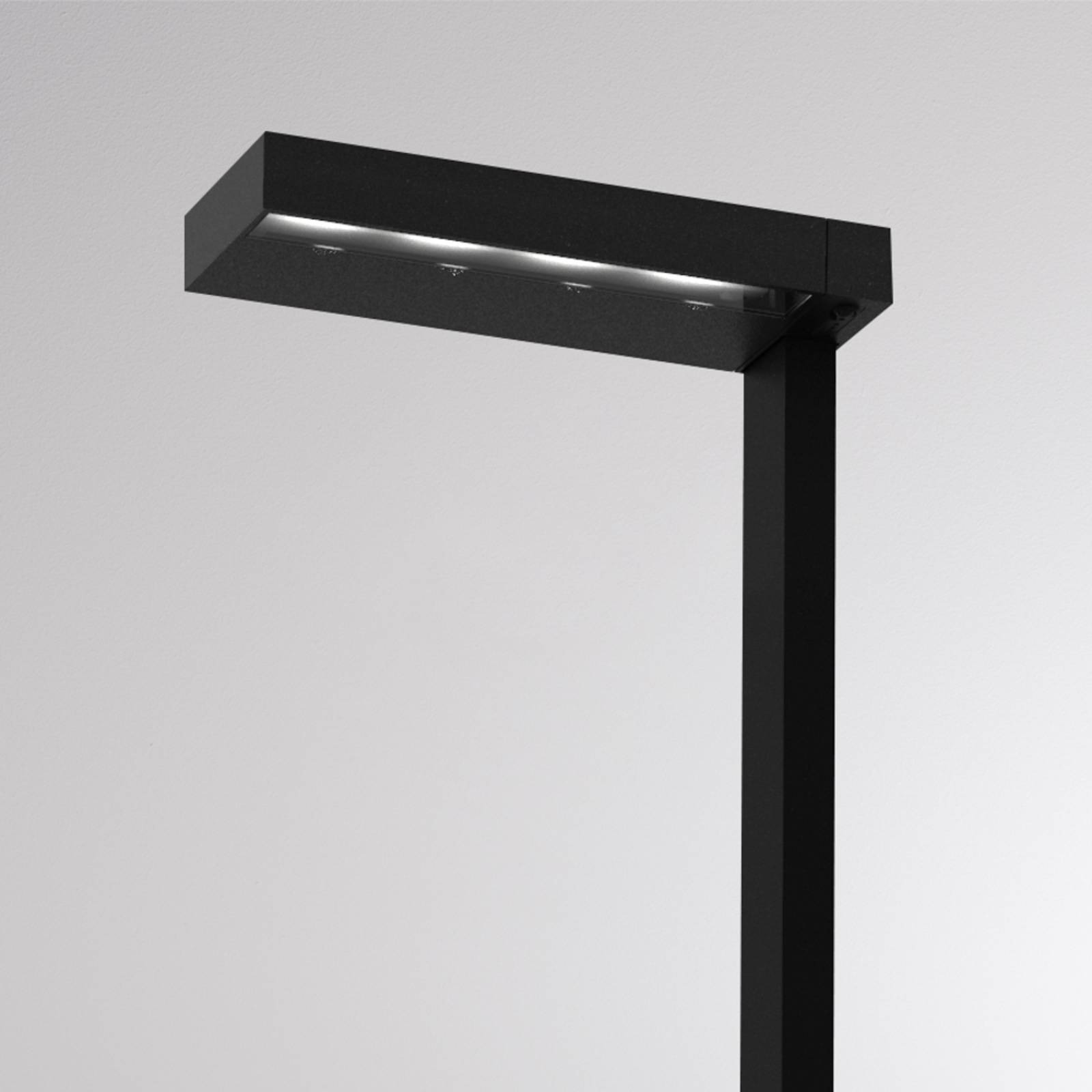 Hoogwaardige Concept Left F LED vloerlamp met pushdimmer De LED-staanlamp Concept Left F werd speciaal ontwikkeld voor de verlichting van werkplekken. Het heeft een modern en rechtlijnig ontwerp en de behuizing is gemaakt van hoogwaardig aluminium. De universele witte lichtkleur van de LED vloerlamp is bijzonder geschikt voor alle werkzaamheden aan het bureau, omdat het geconcentreerd werken bevordert en ondersteunt. Bovendien wordt het licht zowel naar boven als naar beneden uitgestraald en maakt het dus zowel directe werkplekverlichting als indirecte sfeerverlichting mogelijk. Dit zorgt voor een gelijkmatige verlichting van de werkomgeving, wat de ogen ontlast tijdens beeldschermwerk. Bovendien is de kantoorarmatuur uitgerust met een pushdimmer om de helderheid dienovereenkomstig te dimmen en de lichtintensiteit aan verschillende omstandigheden aan te passen. – Verblindingswaarde (UGR):