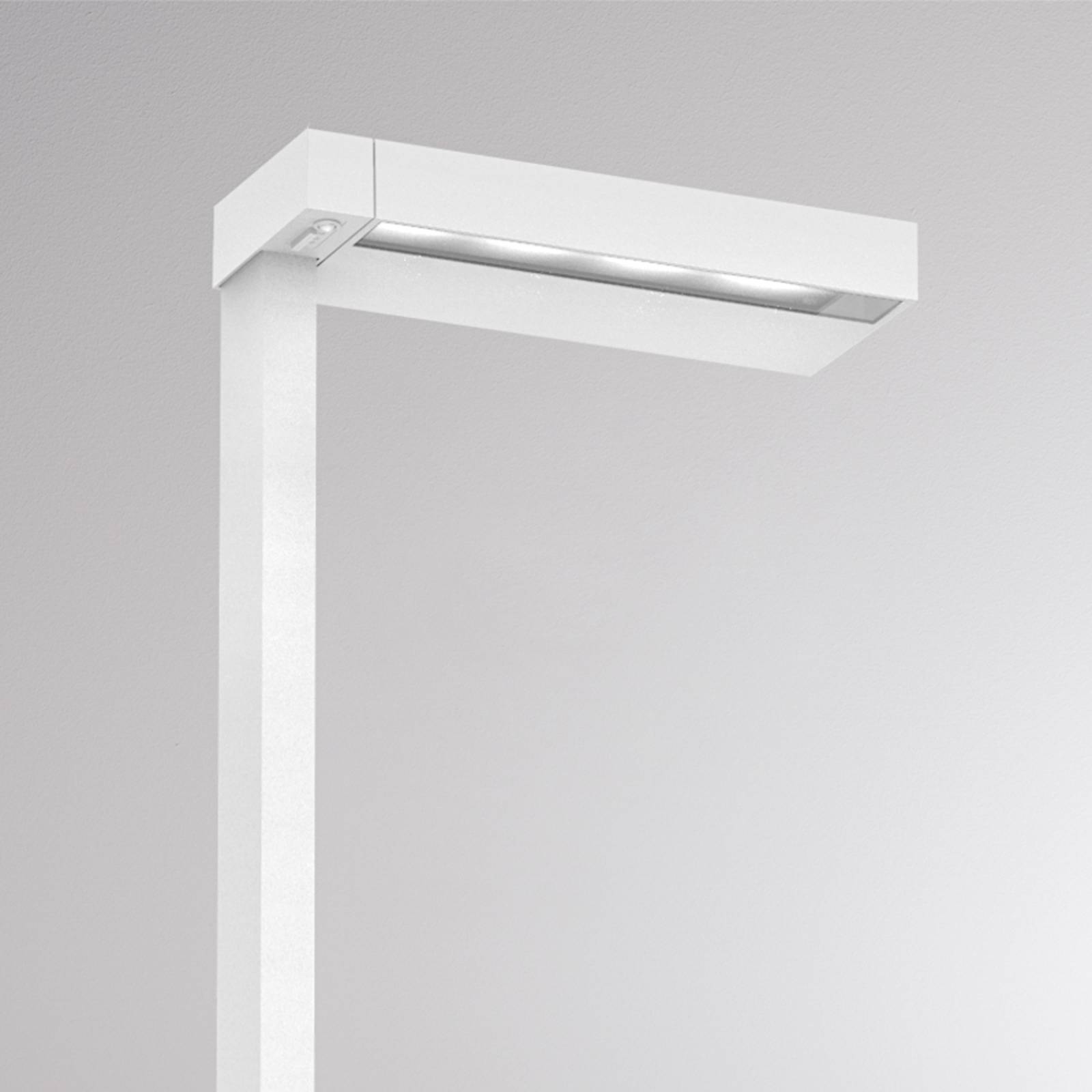 Functional Concept Right F staande lamp met universele witte LED’s en ingebouwde daglichtsensor en bewegingsmelder De LED-staanlamp Concept Right F is met zijn indrukwekkende afmetingen en verschillende functies de perfecte lichtbron voor computerwerkplekken. De permanent geïntegreerde lichtdioden stralen een universeel wit licht uit dat vooral de concentratie tijdens het werk bevordert. Enerzijds wordt het licht rechtstreeks naar beneden uitgestraald, zodat het bureau goed wordt verlicht, anderzijds wordt het indirect naar boven uitgestraald, zodat een aangename rondomverlichting ontstaat. De behuizing is gemaakt van hoogwaardig aluminium en heeft een modern design. De LED-vloerlamp is ook uitgerust met een daglichtsensor, die ervoor zorgt dat de verlichtingsomstandigheden zo constant mogelijk blijven door de helderheid van het licht aan te passen aan het omgevingslicht. Op die manier worden de ogen ontlast tijdens beeldschermwerk en wordt vermoeidheid voorkomen. Een ander kenmerk van het Concept Right F dat zowel geld bespaart als milieuvriendelijk is, is de geïntegreerde bewegingsdetector die onafhankelijk van daglicht werkt en reageert op de aanwezigheid van mensen. Als de vloerlamp op de werkplek geen beweging waarneemt, schakelt zij automatisch uit en gaat weer branden zodra op of rond het bureau beweging wordt waargenomen. – Verblindingswaarde (UGR):