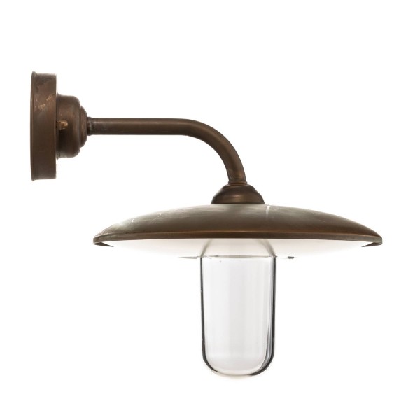 Klassieke CASALE buitenwandlamp in koperen look De CASALE buitenwandlamp maakt indruk met haar eenvoudige elegantie. De brede kap beschermt het heldere glas en reflecteert het licht zodat het naar beneden straalt en de buitenruimte over een groot oppervlak verlicht. ALS belangrijkste materiaal is gekozen voor antiek messing met een koperachtige afwerking. De beschermingsgraad IP44 maakt deze wandlamp ideaal voor buitengebruik. Ze kan daarom heel goed worden gebruikt als padverlichting of in entreezones.
