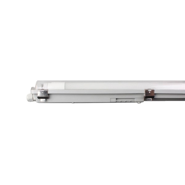 Aqua-Promo vochtbestendige diffuser armatuur, 1 vlam, 120 cm lang De Aqua-Promo LED vochtbestendige diffuser armatuur kan worden gebruikt in elk type vochtige ruimte. Universele witte verlichting wordt bereikt met vervangbare LED-buizen, die naast hun energie-efficiëntie worden gekenmerkt door een zeer hoge schakelweerstand (meer dan 100.000 schakelhandelingen).