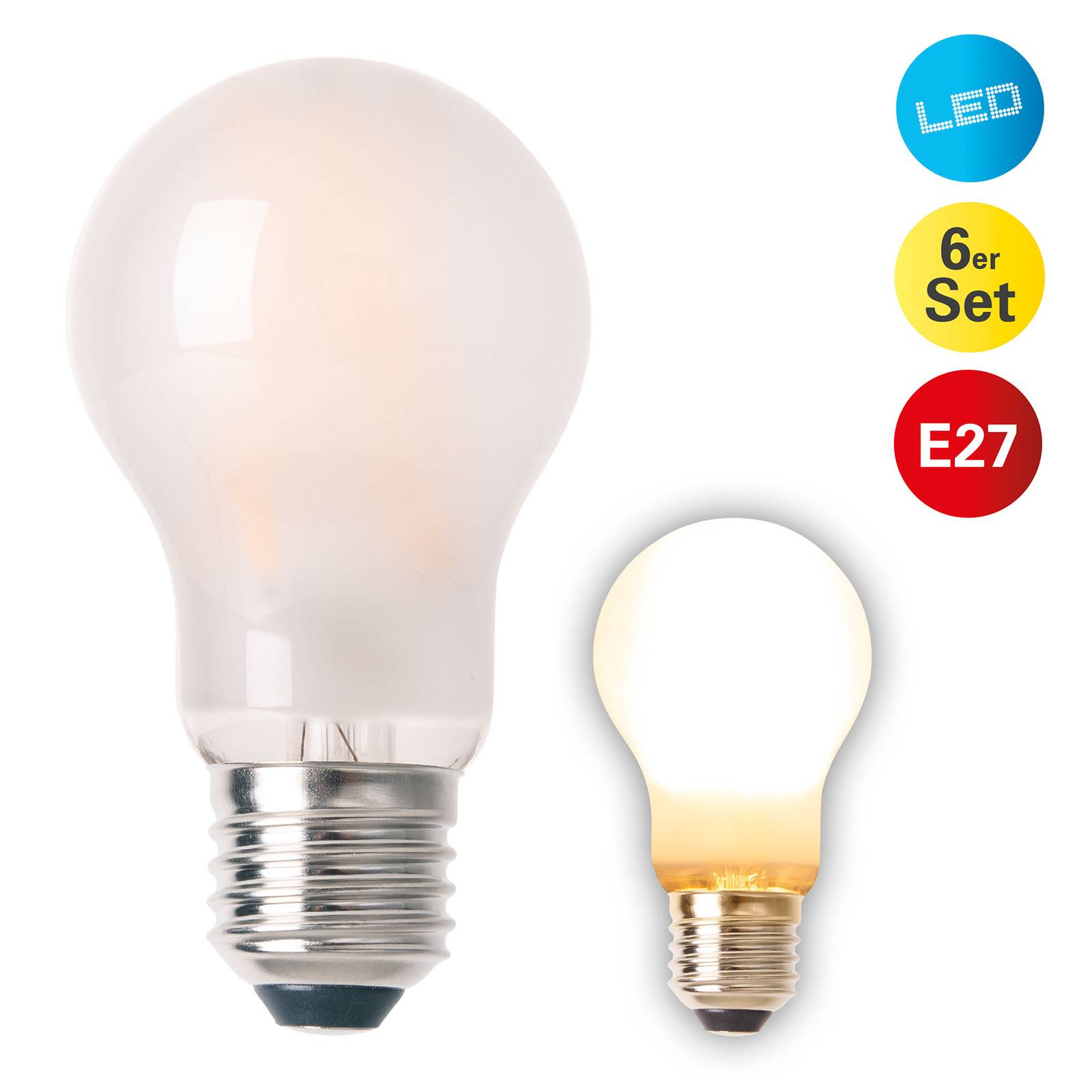 LED lamp E27 8,3W 750 lumen, warm wit, set van 6 De klassieke LED lamp met gesatineerde glazen behuizing geeft warm wit licht voor een aangename sfeer. Geleverd als multipack met 6 lampen in een set, kunnen meerdere of meervlamige armaturen tegelijk worden uitgerust. – pak van 6 – niet dimbaar