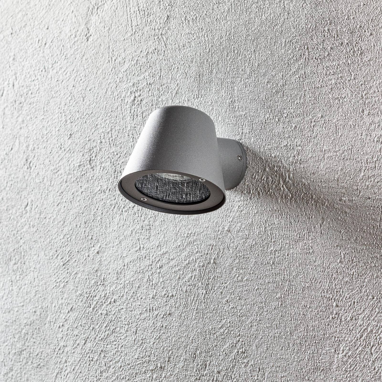 Aleria-buitenwandlamp: heldere verlichting met weinig benodigde ruimte De kleine buitenmuurlamp Aleria is gemaakt van robuust aluminium en kan overal buiten worden geplaatst: in het gebied van de ingang van het huis, naast de ingang van het pand of op de garagemuur. Het eenvoudige, elegante ontwerp past harmonieus bij de meest uiteenlopende gevelontwerpen. Het licht wordt direct uitgestraald en zorgt voor voldoende omgevingslicht, wat ook meer veiligheid op het terrein betekent.