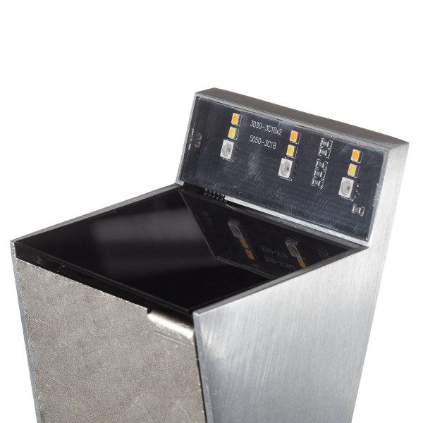 De Q-Wedge LED-wandarmatuur bestaat uit twee aluminium rechthoeken – één naast de wand en één schuin omhoog stekend in de ruimte. Op deze laatste zijn de LED’s op de muur georiënteerd. Q-Wedge kan worden ingezet met wit licht met een kleurtemperatuur van twee.700 tot vijf.000 K voor indirecte omgevingsverlichting of met gekleurd licht voor decoratie. Na het opnieuw inschakelen wordt de laatst gekozen instelling nogmaals geactiveerd.