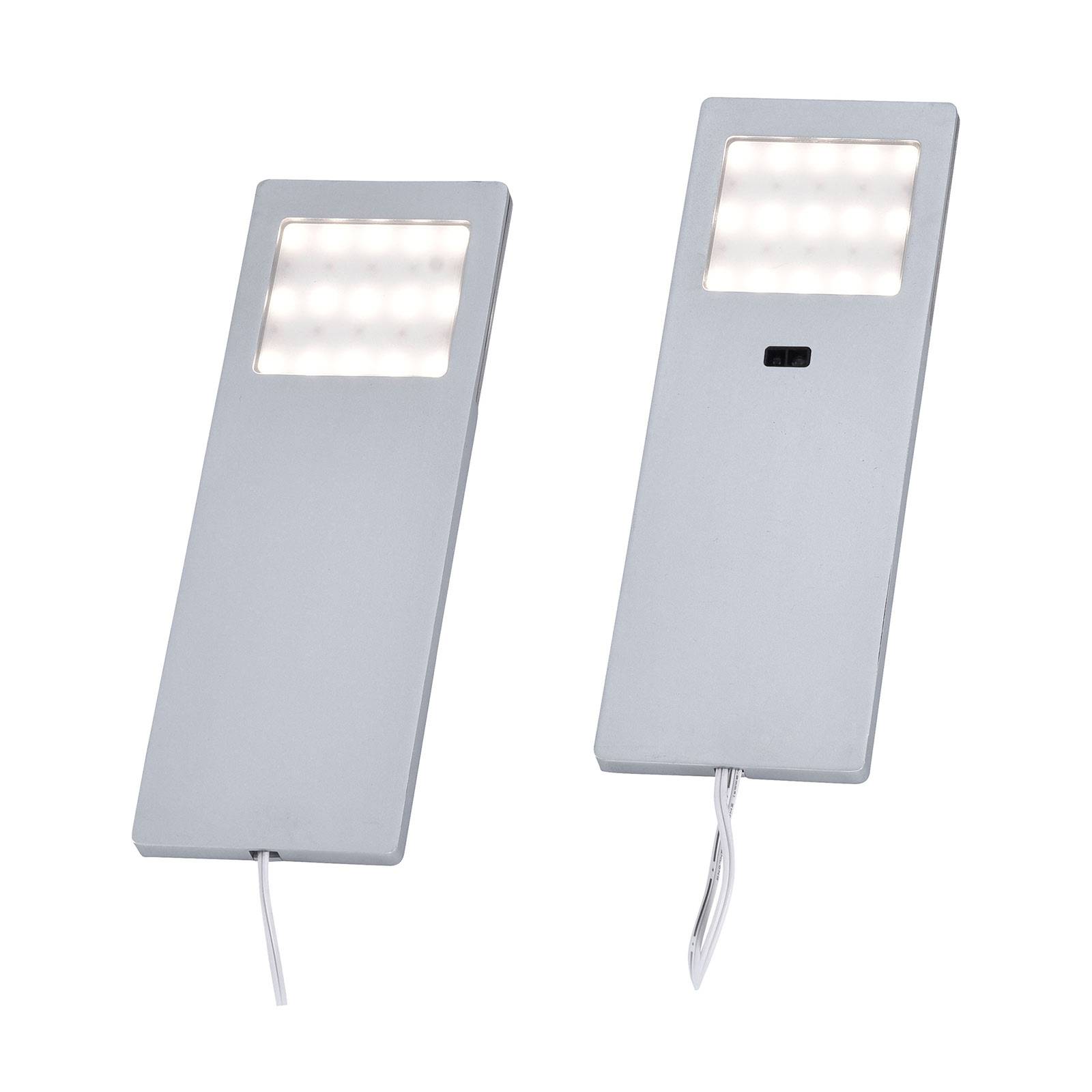 Helena LED onderkastarmatuur – praktische werkverlichting voor meubelaanbouw De Helena LED onderkastarmatuur is ideaal voor het verlichten van het werkblad in de keuken. Hij heeft een platte, rechthoekige vorm en is uitgerust met telkens één warmwit schijnende LED-plaat. Het wordt geleverd in een praktische set van 2, met elk een 180 cm lange kabel. Een van de twee armaturen heeft een sensorschakelaar die een aanraakvrije bediening van beide armaturen mogelijk maakt. De armaturen worden van stroom voorzien via een gemeenschappelijke, 180 cm lange voedingskabel met stekkertransformator.