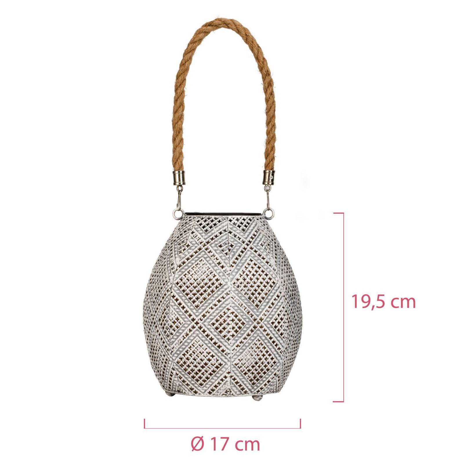 Zonneschijn Diamant LED Solar Light met automatische inschakeling De Sunshine Diamond solar lantaarn met zijn witte vintage oppervlak en gouden binnencoating betovert met romantische lichteffecten. Zonder ingewikkelde montage kan de lamp gewoon op een tafel worden geplaatst of aan het decoratieve jute touw worden opgehangen. De module wordt opgeladen door zonne-energie. Het licht gaat tot 8 uur per dag mee.