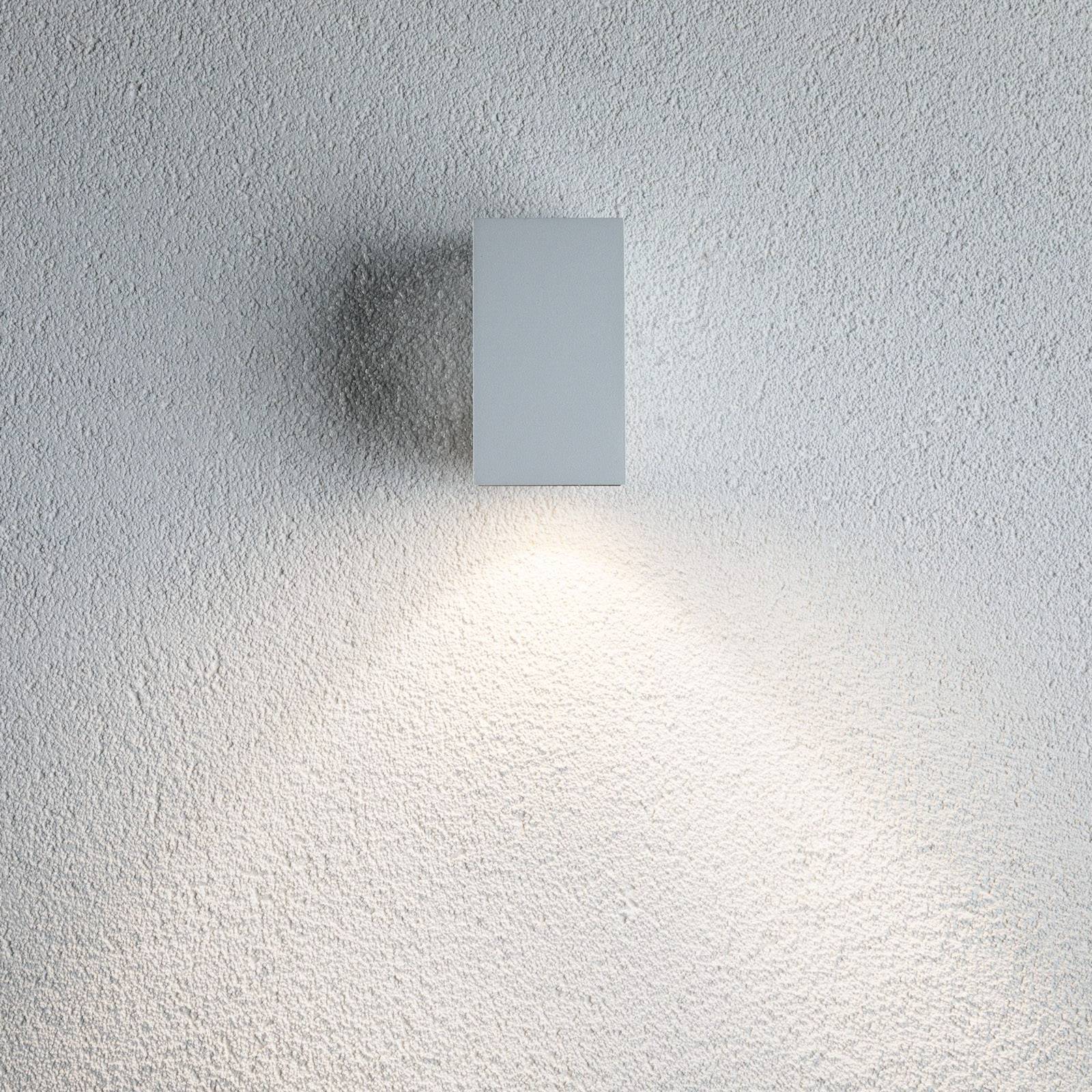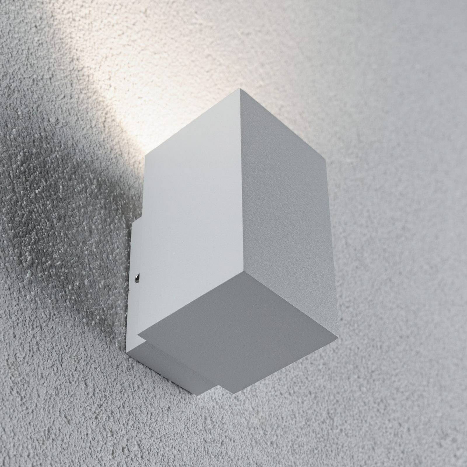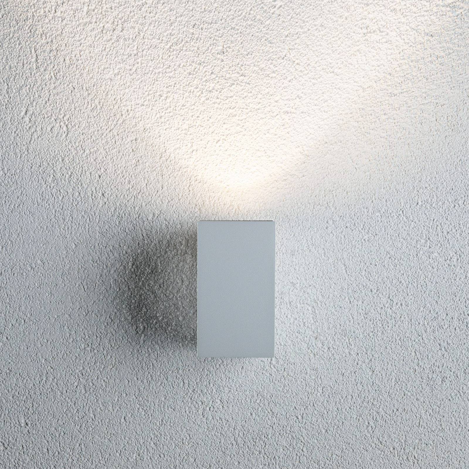 LED-buitenwandlamp Vlam met eenzijdige lichtuitstraling Een kubusvormige behuizing van aluminium en een cirkelvormige lichtuitstraling met gesatineerde afdekking, waarachter warmwitte, energiezuinige en duurzame LED’s zijn verborgen – dat is de LED buitenmuurarmatuur Flame. Het is geschikt voor bijna elke modern vormgegeven buitenruimte en verrijkt het met een 75° brede lichtkegel. Afhankelijk van de vereisten kan deze naar boven of naar beneden worden gericht, zodat ofwel een lichtaccent op de muur boven of bovendien een oriëntatieverlichting voor het gebied direct naast de gevel wordt gerealiseerd.
