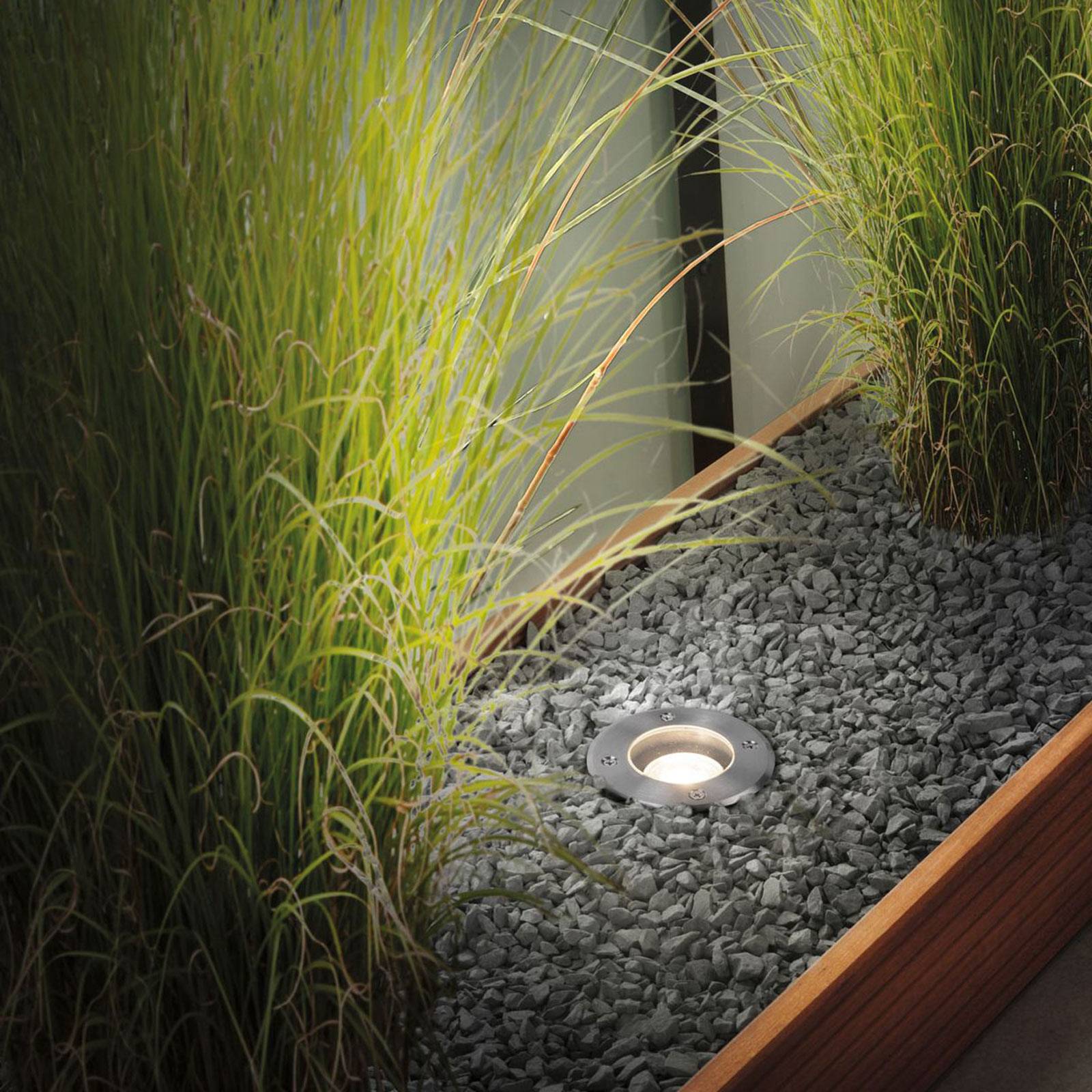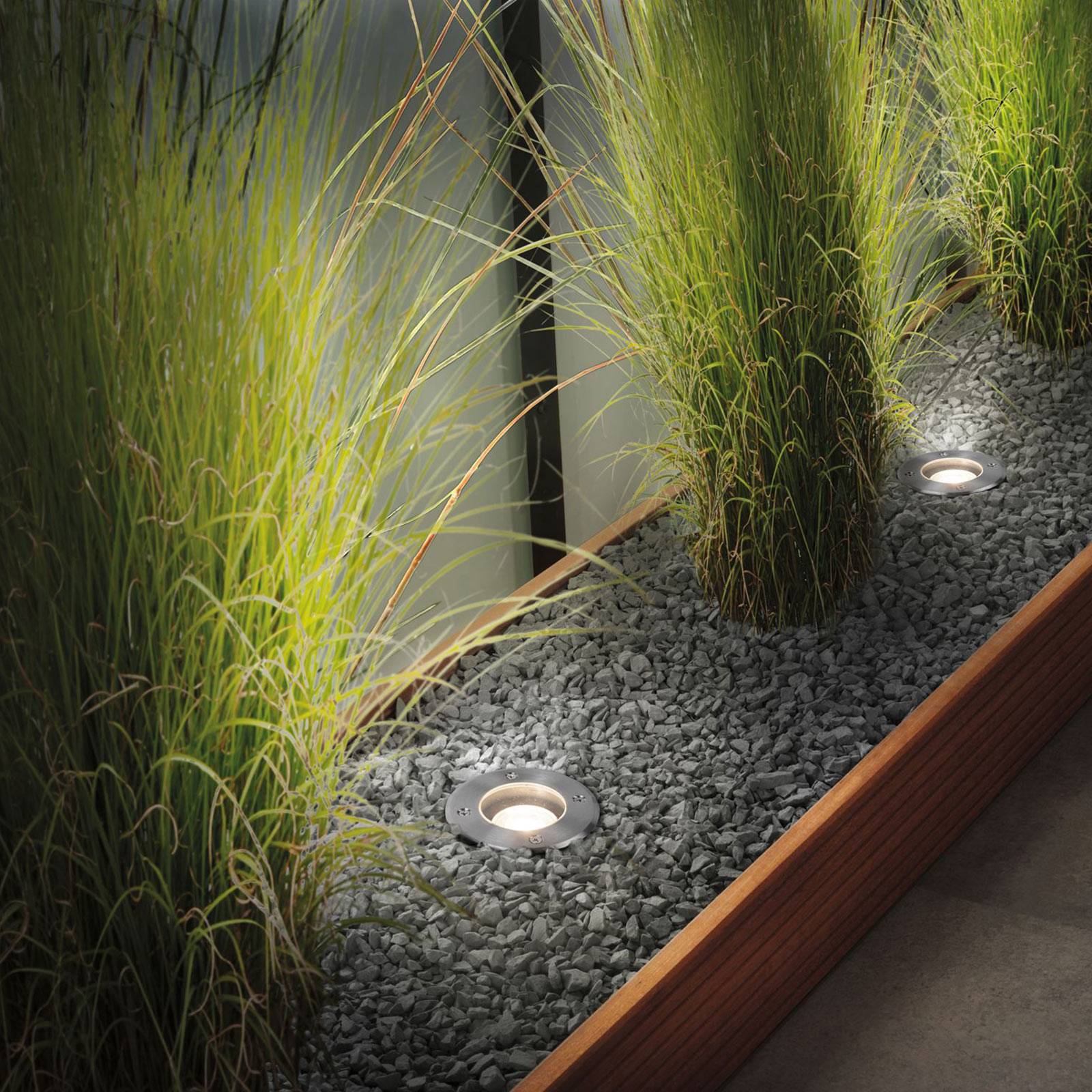 Inbouwvloerverlichting Vloer van roestvrij staal – tot 500 kg draagvermogen Met de vloerinbouwarmatuur Floor van roestvrij staal kunnen decoratieve lichtaccenten worden gezet in de gehele buitenruimte, zelfs in de toegankelijke ruimte. De inbouwvloerlamp is belastbaar tot 500 kg. Hij past in een installatieopening met een diameter van 10,5 mm en kan worden uitgerust met een GU10-lamp naar keuze tot een maximum wattage van 10 W. Het is uitgerust met een 30 cm lange netaansluitkabel en wordt geleverd inclusief een inbouwdoos, die niet alleen de installatie vergemakkelijkt, maar het ook gemakkelijker maakt om de lamp te verwijderen voor later onderhoud of bij het verwisselen van de lamp.