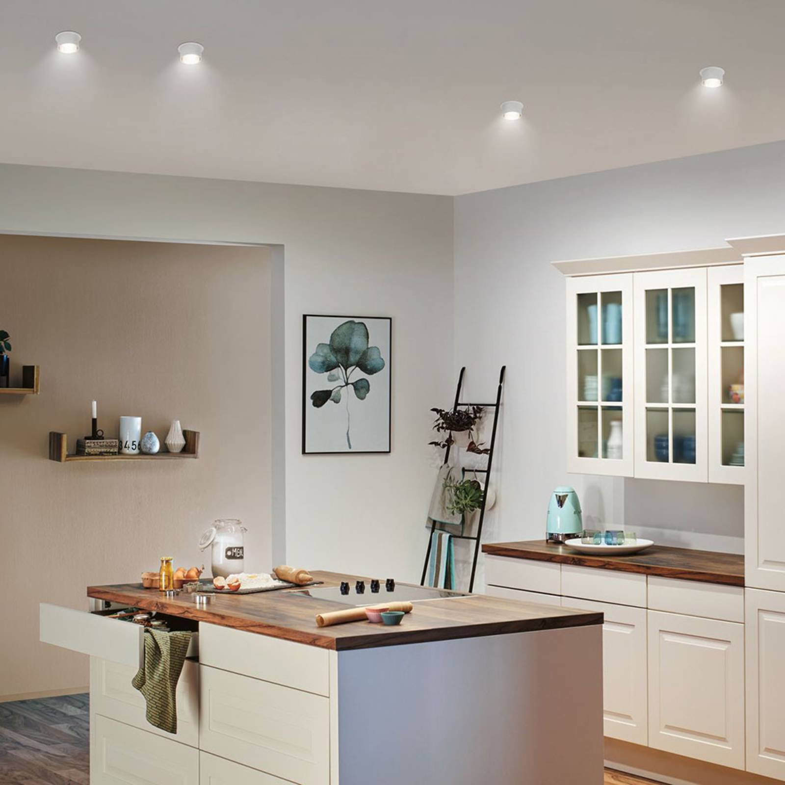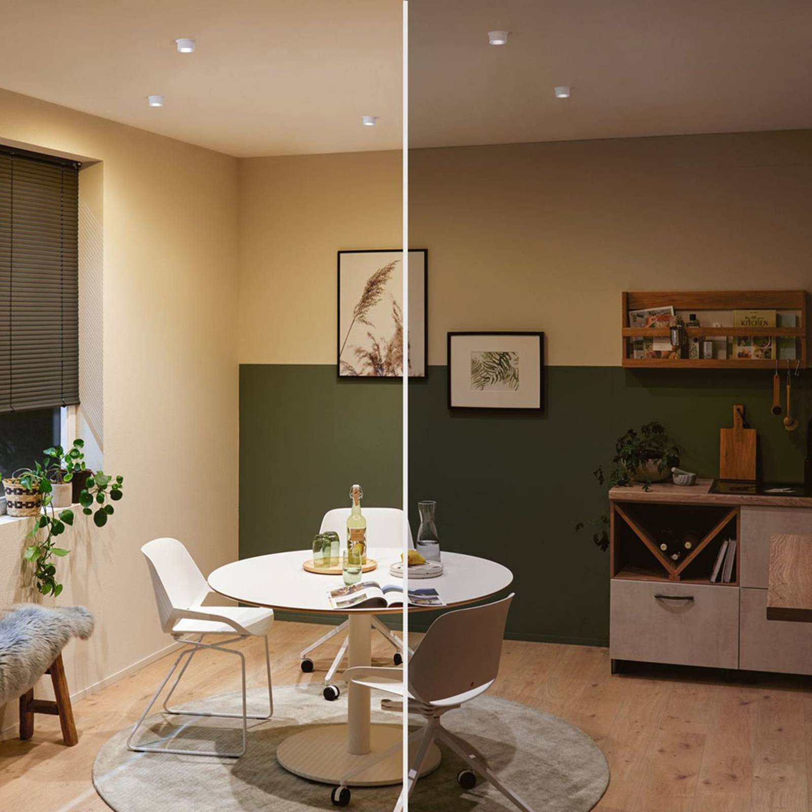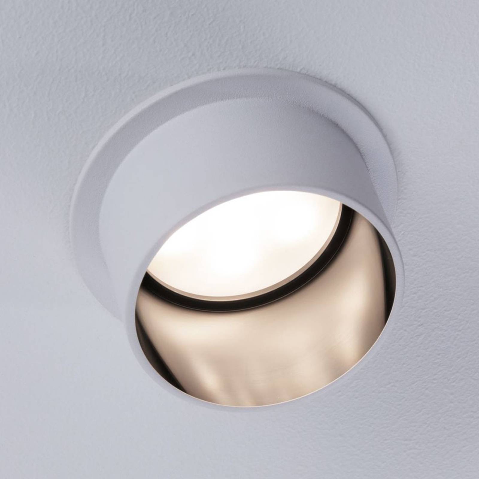 Tweekleurige LED-inbouwarmatuur Gil in een set van drie – dimbaar in 3 stappen Inbouwarmaturen zoals Gil plaatsen lichtaccenten in moderne woonruimtes: deze LED inbouwarmatuur in een set van 3 kan dankzij haar beschermingsgraad IP44 zelfs in badkamers, sauna’s en alle andere vochtige ruimtes worden gebruikt. De decoratieve cilinder steekt iets uit. De onderste lichtpunten stralen warm wit licht en technische schittering uit: Ze kunnen traploos aan elkaar worden gekoppeld en hun licht kan via de normale wandschakelaar in drie trappen worden gedimd om de gewenste verlichtingsstemming te bereiken: 100 %, 50 % of 25 %. De LED’s zijn ook vervangbaar; vervanging moet worden uitgevoerd door een gespecialiseerd bedrijf. – 230V directe aansluiting