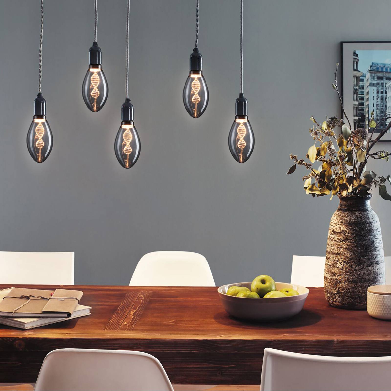 LED lamp E27 3,5W Filament Helix, 1.800 K met rookgrijs getint glas Deze LED lamp E27 uit de Inner Glow Edition wordt gekenmerkt door zijn decoratieve effect en gezellige licht. De LED’s zijn in een speciale vorm geïnstalleerd in het rookgrijs getinte glas en de lasergravure zorgt voor een volledig niet-verblindende lichtemissie van het extra warme goudkleurige licht, terwijl de lichtgevende ring aan het uiteinde van de lamp zorgt voor een directe neerwaartse lichtemissie. Deze lamp maakt van elk open armatuur een blikvanger – Warm goudkleurig licht 1.800 K – Alleen geschikt voor decoratieve verlichting, niet voor algemene verlichting