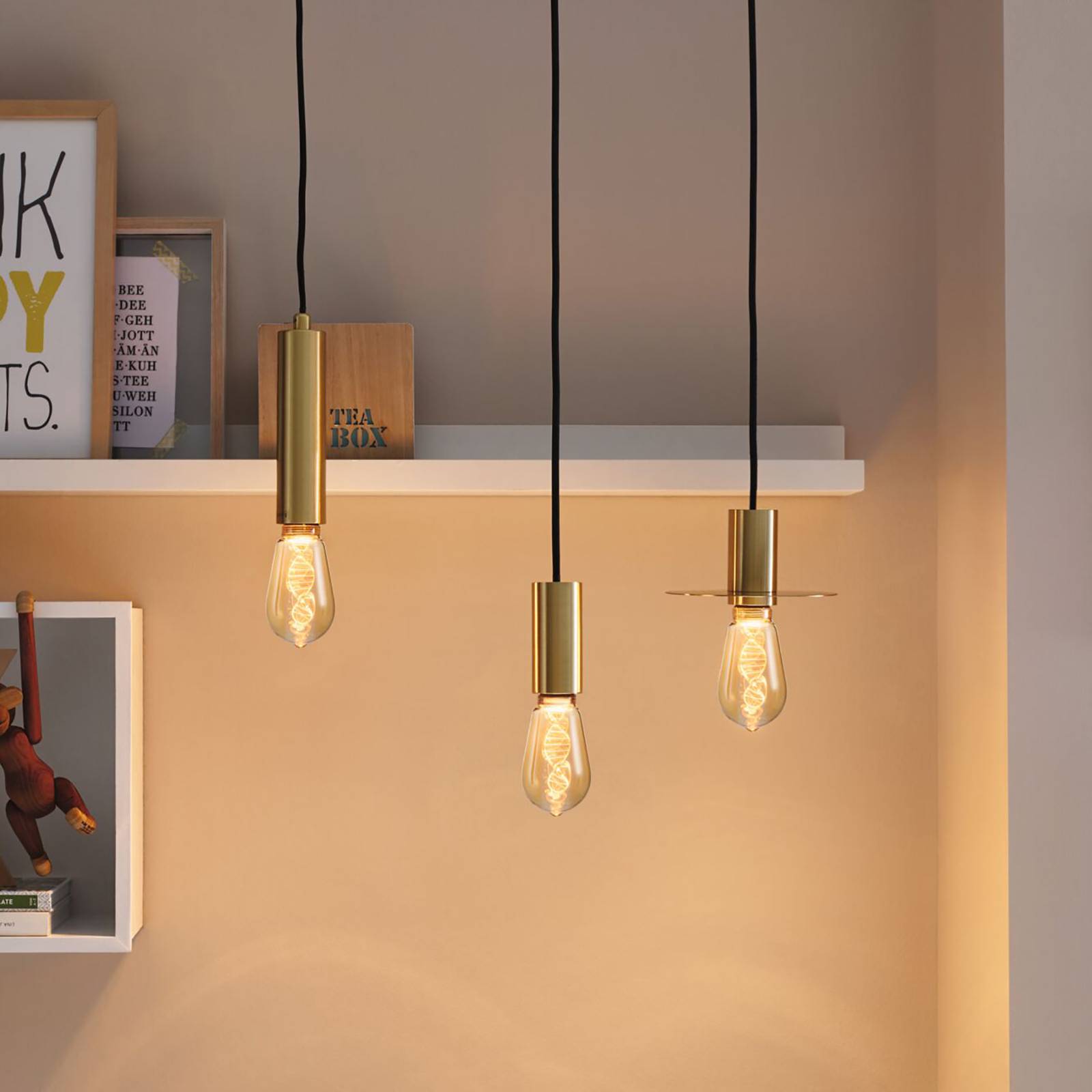 LED lamp E27 3,5W Filament Helix in bolvorm, 1.800 K met goudkleurig glas De E27 3,5 W LED lamp van de Inner Glow Edition maakt van elk armatuur, hoe eenvoudig ook, een hoogtepunt. De LED’s zijn op een zeer speciale en decoratieve manier gerangschikt in de bolvormige lamp met goudkleurig glas, de fijne lasergravure creëert een zeer warme en absoluut niet-verblindende lichtuitstraling in de kamer, de lichtgevende ring aan de onderkant van de lamp straalt gericht licht naar beneden – warm goudkleurig licht 1.800 K – alleen geschikt voor decoratieve verlichting, niet voor algemene verlichting
