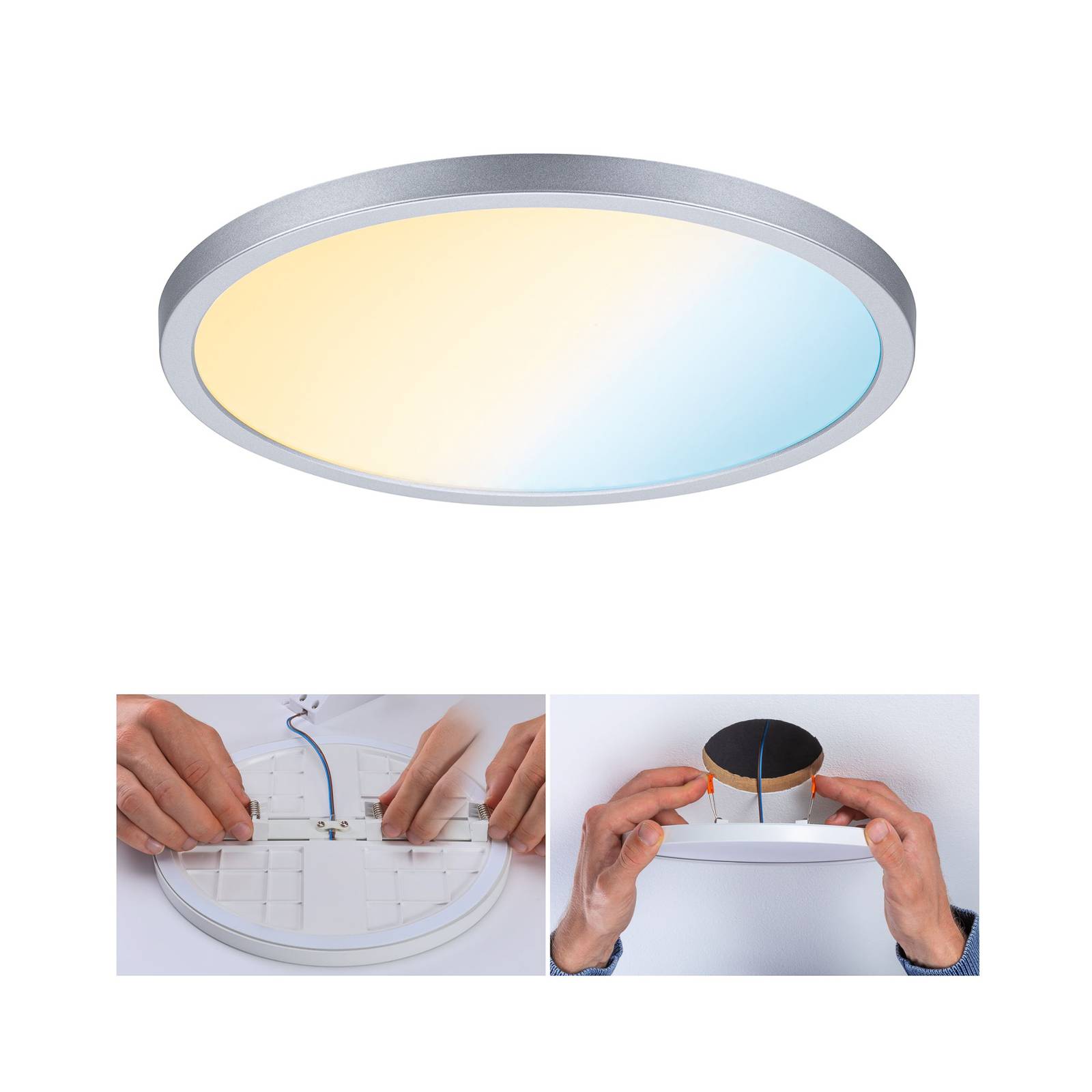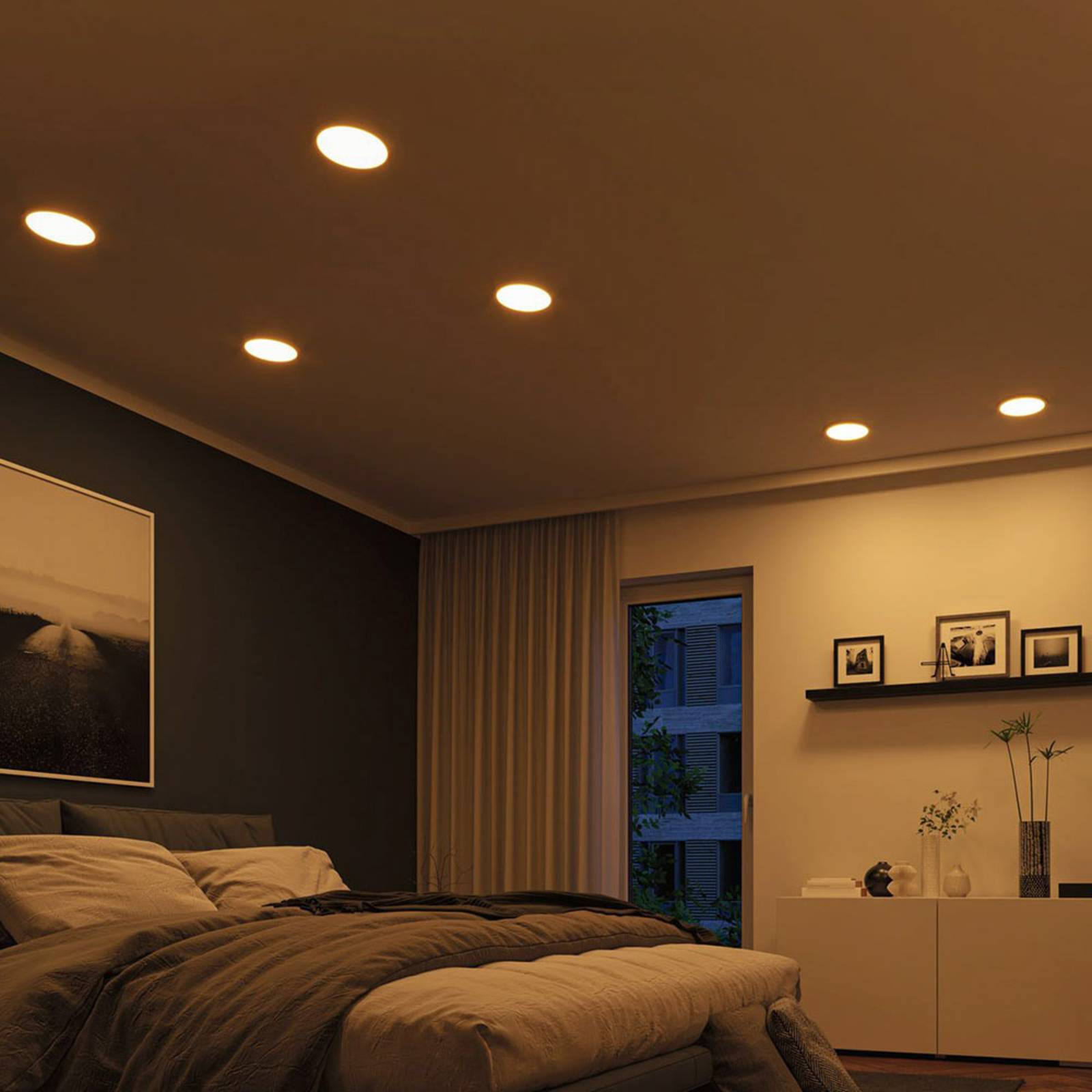 Ronde LED-inbouwarmatuur Areo voor traploze sturing via smartphone De ZigBee functie opent volledig nieuwe mogelijkheden voor de moderne LED-inbouwdoos Areo: Met de gratis app en de Smart Friends Box of optioneel met de Paulmann ZigBee afstandsbediening (zonder app) kan de witlichtregeling en het dimmen traploos worden aangepast. Afhankelijk van de persoonlijke wensen kan bijvoorbeeld een koud daglichtwit voor geconcentreerd werken of een gezellig warm wit voor ontspannende uren comfortabel vanaf de bank worden geregeld. Het vlakke, moderne design met het monochrome frame kan eenvoudig worden geïntegreerd in verschillende interieurstijlen en biedt vele toepassingsmogelijkheden als wand- of plafondinbouwarmatuur. – geschikt voor verschillende inbouwdiameters door schuifbare veerklemmen aan de achterzijde – kan ook gebruikt worden in vochtige ruimtes zoals badkamers, kelders, buitenruimtes door IP44 spatwaterdichtheid – Lichtkleur variabel instelbaar van 3.000 K – 6.500 K Technische gegevens / compatibiliteit: – naar keuze te bedienen met gratis Smart Friends App (iOS of Android) via smartphone of tablet via de Paulmann Smart Friends Box of met de Paulmann ZigBee afstandsbediening (zie accessoires) – compatibel met de volgende systemen: Amazon Alexa Echo Plus, Philips Hue Bridge 2 (behalve Hue Entertainment), Osram SMART+. – Uitbreidbaar met andere Smart Friends-producten van verschillende fabrikanten – compatibel met ZigBee 3.0