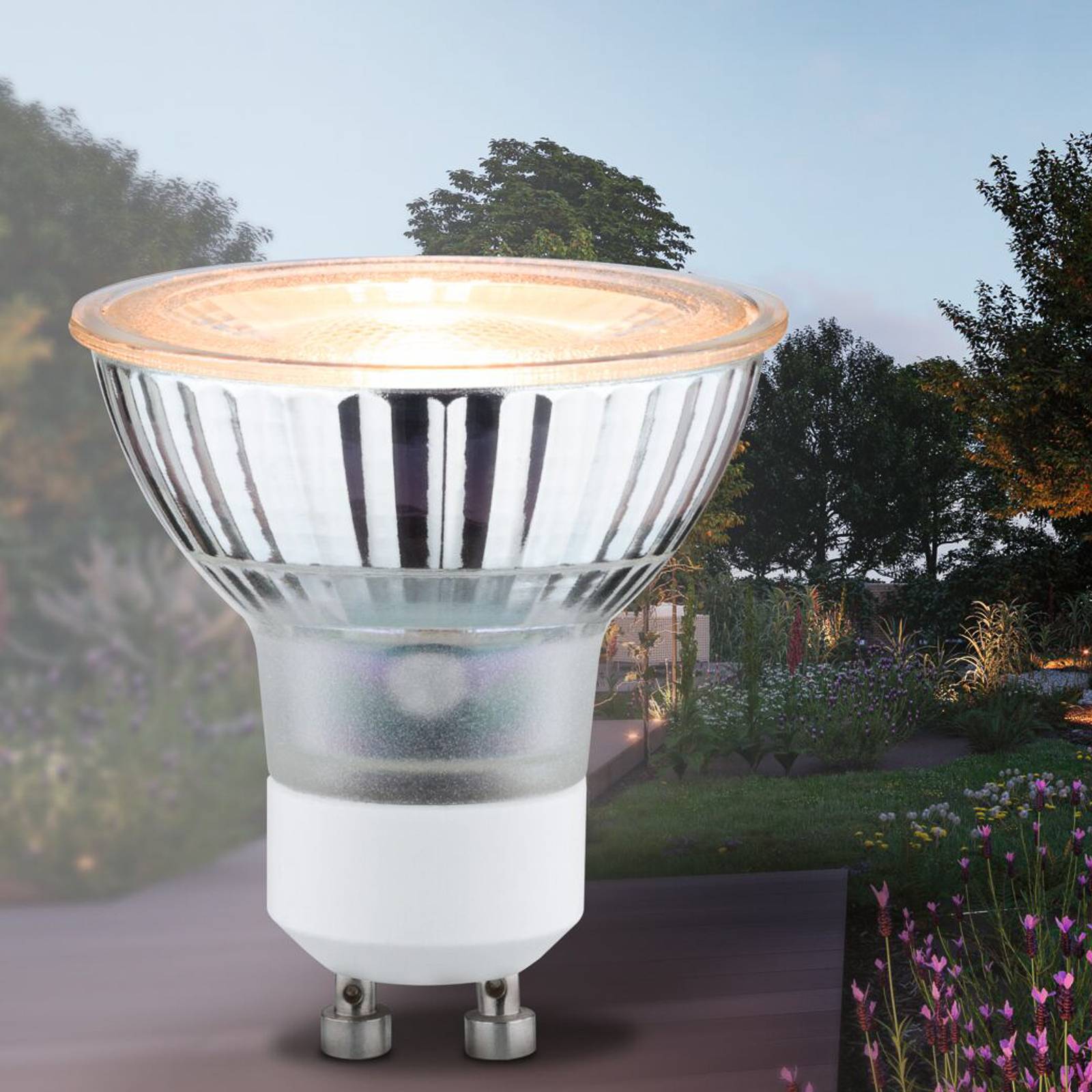 LED reflectorlamp GU10 4,3W met extra warme lichtkleur Het warme licht van deze LED reflectorlamp met een lichttemperatuur van 2.200 K is bijzonder insectvriendelijk, omdat het buiten het zichtbare bereik valt voor de meeste insecten, wat betekent dat ze niet worden aangetrokken door kunstlicht. Die LED lamp creëert een gezellige sfeer in spots en inbouwspots in buitenruimtes en beschermt tegelijkertijd tegen insecten.