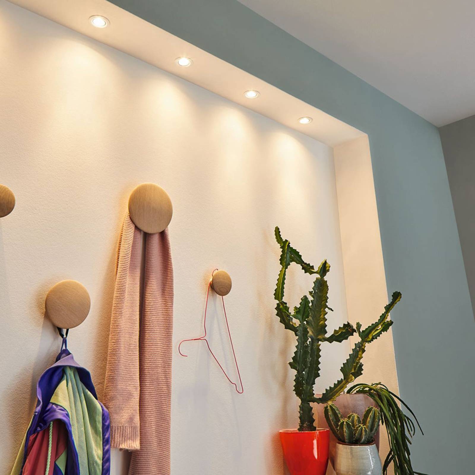 Kleine LED-inbouwspot Nova mini in een set van 3 De kleine, starre, lichtgevende Nova mini-inbouwspots kunnen dankzij hun kleine diameter in een breed scala van toepassingen worden gebruikt. Ze worden vooral gebruikt in gangen, serres of boven balies en in balkonbekledingen. De warm witte Nova mini’s in een set van drie zijn zeer terughoudend in ontwerp en onafhankelijk van stijl. Bovendien zijn de LED’s bijzonder vlak, uitwisselbaar en kunnen ze zonder beperking in aantal met elkaar worden verbonden, wat een breed scala aan mogelijkheden voor de gebruiker opent. De inbouwspots hebben een IP44-beschermingsgraad tegen spatwater en kunnen daarom ook in badkamers worden gebruikt.