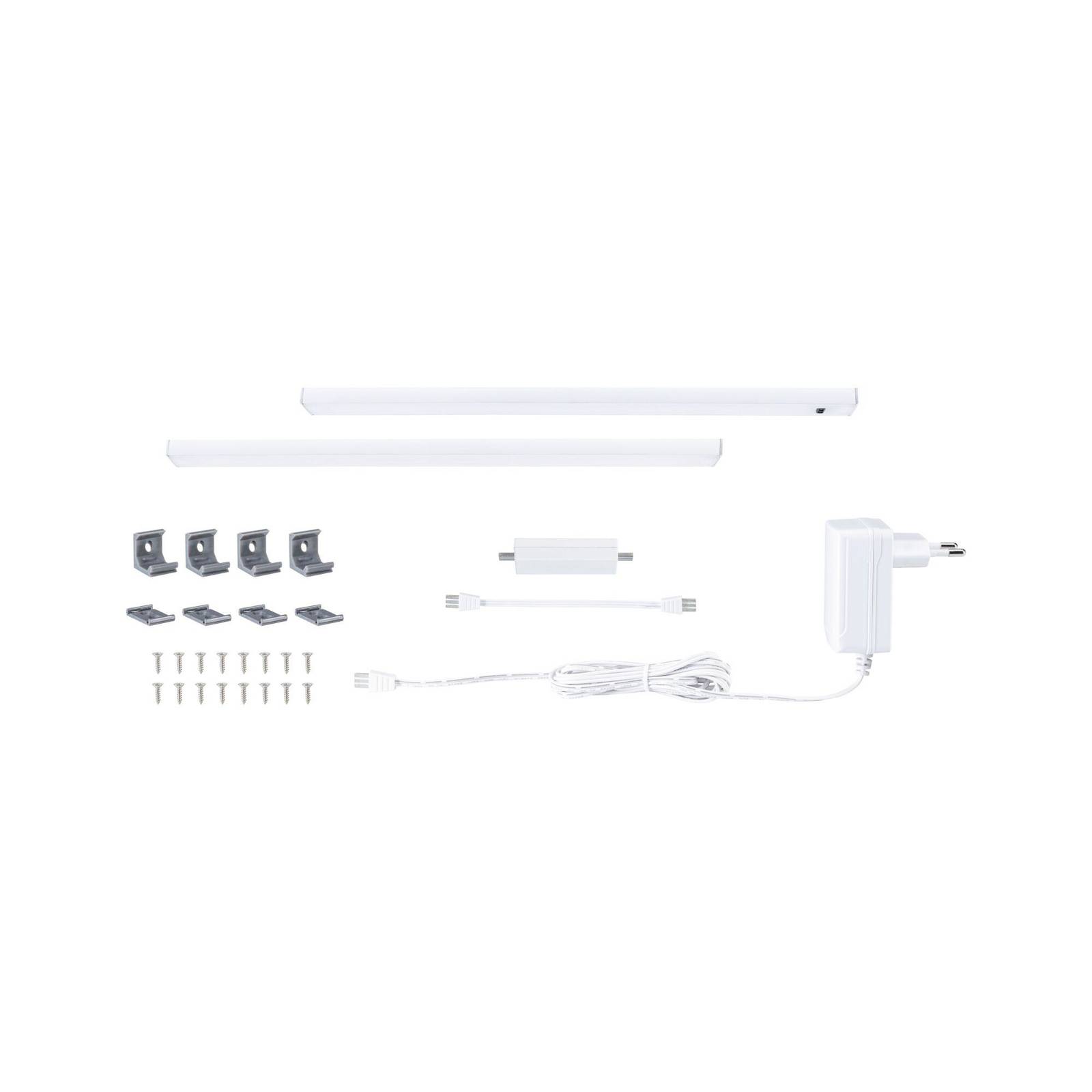 Eigentijdse keukenverlichting met gebarenbediening en instelbare lichtkleur – LED meubelverlichting Inline, starterset met twee lampen De LED meubelverlichting Inline is ontworpen voor de functionele verlichting van keukenwerkbladen. Ze bestaat uit een slank aluminium profiel en een diffuser met gemakkelijk te reinigen oppervlakken. Voor de bediening is een PIR-sensor geïntegreerd, waardoor aanraakvrije bediening mogelijk is – praktisch en hygiënisch. De lichtkleur kan worden aangepast van warmwit tot daglicht door eenvoudig met de hand over de sensor te vegen – Startset met twee lampen, aansluitkabel met plug-in voedingseenheid, aansluitkabel, installatiemateriaal – Kan worden aangevuld met een uitbreidingsset (tot een maximaal totaal vermogen van 24 W) – De PIR-sensor op de eerste lamp wordt gebruikt om alle andere aangesloten lampen samen te regelen – Geheugenfunctie slaat de geselecteerde lichtkleur op