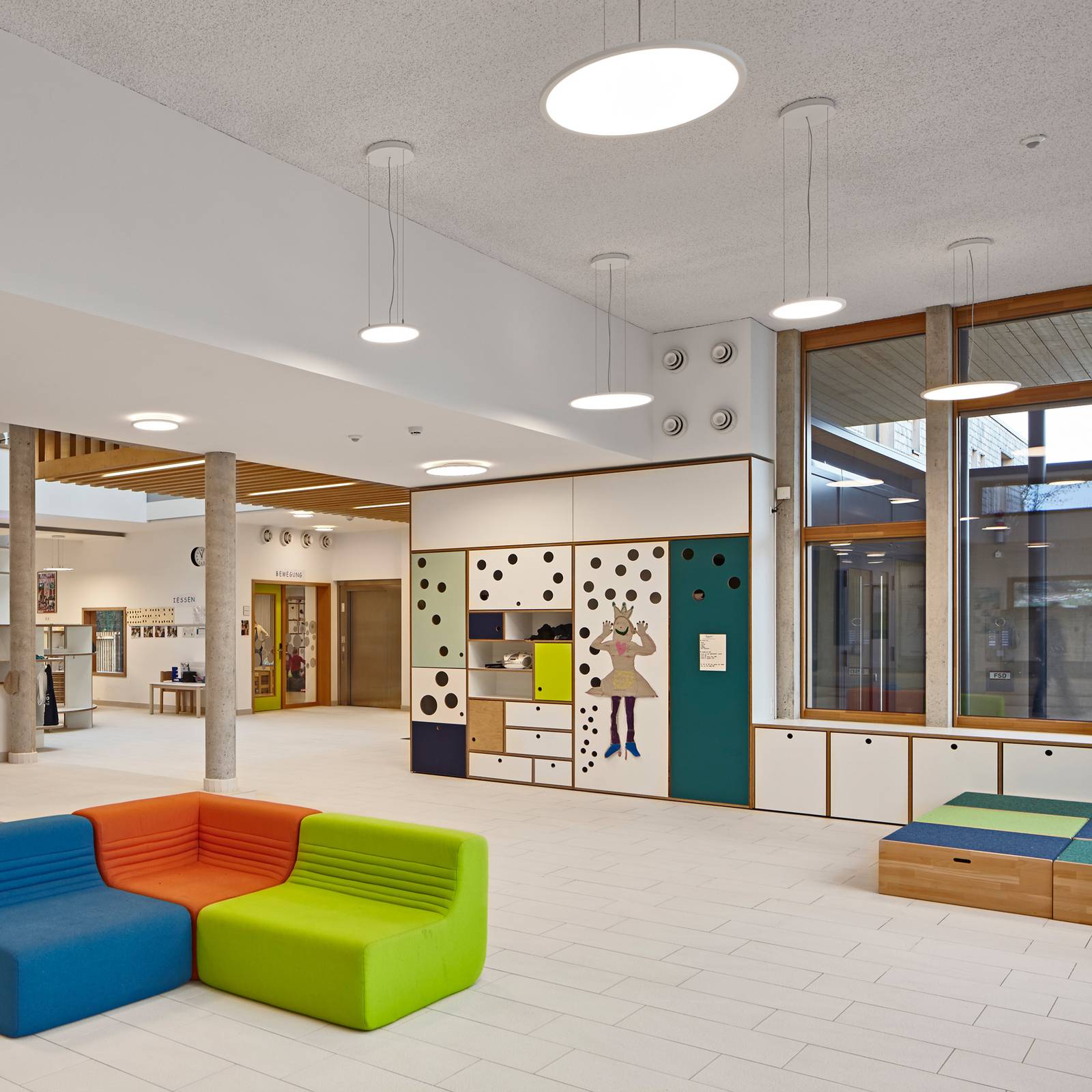 LED-pendelarmatuur FL Round 333 PL OP (opaal) in ronde uitvoering voor directe algemene verlichting FL Round 333 PL OP is een veelzijdige lichtbron die zorgt voor een aangename algemene verlichting van grote oppervlakken, vooral in moderne kantoren en bedrijfsruimten. De pendelarmatuur in vlakke, ronde vorm is samengesteld uit een wit en krasbestendig gepoedercoat frame van geëxtrudeerd aluminium profiel en een opalen kunststof diffuser. Deze laatste straalt het licht homogeen en met een gering verblindingseffect naar beneden uit. De karakteristieke lichtuitstraling wordt geleverd door de zijdelingse lichttoevoer (LED-sidelight technologie) en de lichtsturende kunststof optiek. – Inclusief convertor, staalkabelophanging, transparante voedingskabel en baldakijn. – Anti-verblinding: UGR < 22 Bekijk productspecificaties