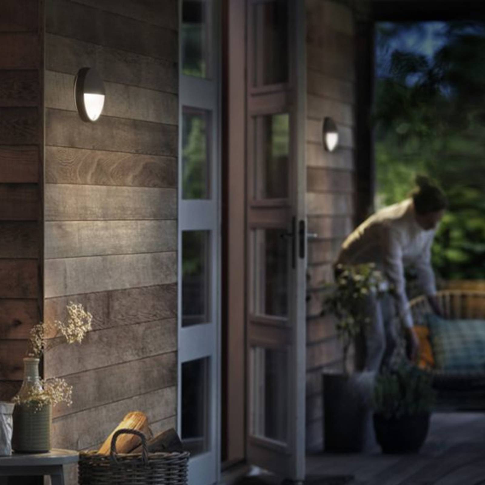 Cirkelvormige outdoor wandlamp Capricorn – voorzien van moderne LED techniek De hoogwaardige outdoor wandlamp Capricorn levert alleen licht, wanneer het nodig is, omdat ze niet alleen een gewone lamp voor buitengebieden, maar aanvullend met een infrarood bewegingssensor uitgerust is. Deze zorgt ervoor dat de lamp automatisch inschakelt wanneer er iemand nadert. Verder is haar koepelvormig, rond ontwerp een optische blikvanger aan de geveld van het huis. De ingebouwde LED geeft haar warm wit licht zacht gedimd en gelijkmatig in het te verlichten gebied af. Met ongeveer 25.000 bedrijfsuren is de vast geïnstalleerde LED daarnaast bijzonder robuust en duurzaam. – Reikwijdte bewegingsmelder: 10 m, aangebracht op 2 m hoogte – stralingshoek bewegingsmelder: 110 ° – brandduur: 5 sec. – 12 min.