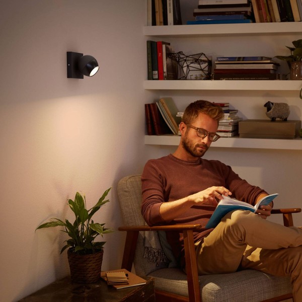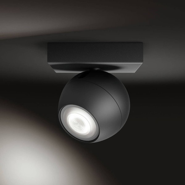 Ter uitbreiding van een Philips Hue systeem: LED-spot Buckram in het zwart Deze praktische White Ambiance LED-spot is ideaal voor de uitbreiding van een bestaand Hue-systeem. De armatuurkop kan worden gezwenkt en gedraaid, waardoor het licht individueel kan worden gericht. De geïntegreerde GU10 LED-lichtbronnen zijn dimbaar en kunnen comfortabel worden gevarieerd in witte tinten in een spectrum van warm wit tot daglicht. De slimme LED Spot Buckram wordt aangestuurd door een compatibele Hue dimmer schakelaar, de bijpassende Hue app of een taalassistent. Houd er rekening mee dat een brug verplicht is voor spraakbesturing. De bediening via de app kan via een bestaand ZigBee systeem of via Bluetooth gebeuren. Bijzondere kenmerken / compatibiliteit – te bedienen met de Hue-dimschakelaar (zie toebehoren) – dimbaar (via app of dimschakelaar) – bestuurbaar met bijpassende Hue app (ZigBee) en Hue Bluetooth app – compatibel met op ZigBee gebaseerde systemen zoals Innogy, Bosch, Magenta (Telekom) en Busch-Jäger – intelligente verlichtingsbesturing Optie a: ZigBee integratie via brug en router, zoals de Philips Hue Bridge (zie accessoires); dit maakt lokale of externe bediening mogelijk via Hue app en de optie van spraakbesturing via Amazon Alexa, Apple HomeKit (Siri) en Google Assistant. – intelligente lichtregeling Optie b: Directe aansturing ter plaatse via Bluetooth met gratis Hue Bluetooth-app. Als er meer dan tien lampen worden gebruikt binnen de Bluetooth-besturing, wordt het gebruik van een brug aanbevolen.